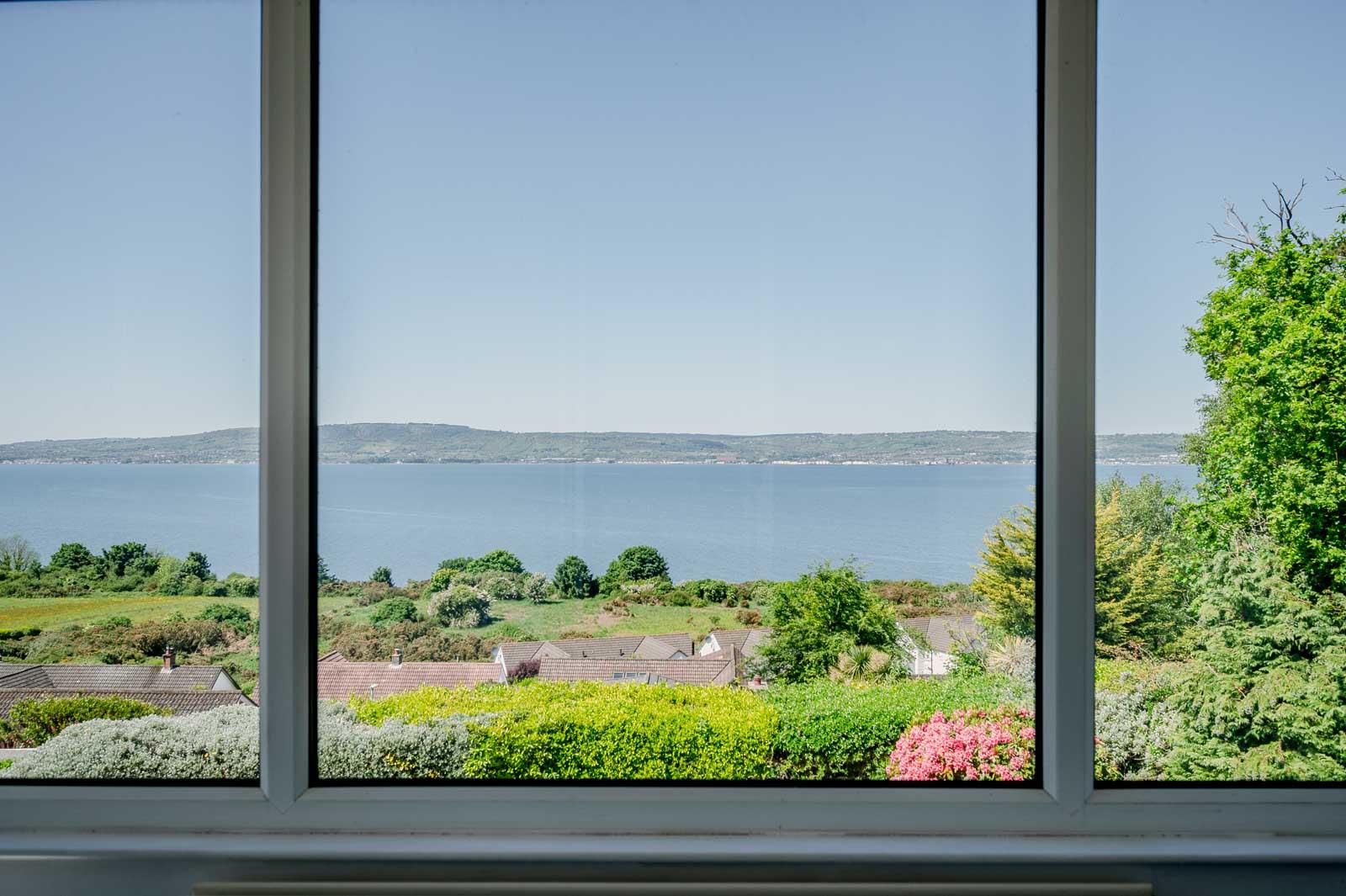 Bedroom (1): - (5.28m x 3.68m) - With outlook to side and front with panoramic views of Belfast Lough and the Antrim Hills.