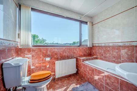 Bathroom: - (2.49m x 2.18m) - White suite comprising of low flush WC, pedestal wash hand basin with hot and cold taps, tiled panelled bath with mixer taps and telephone handle attachment, tiled walls, tiled floor.