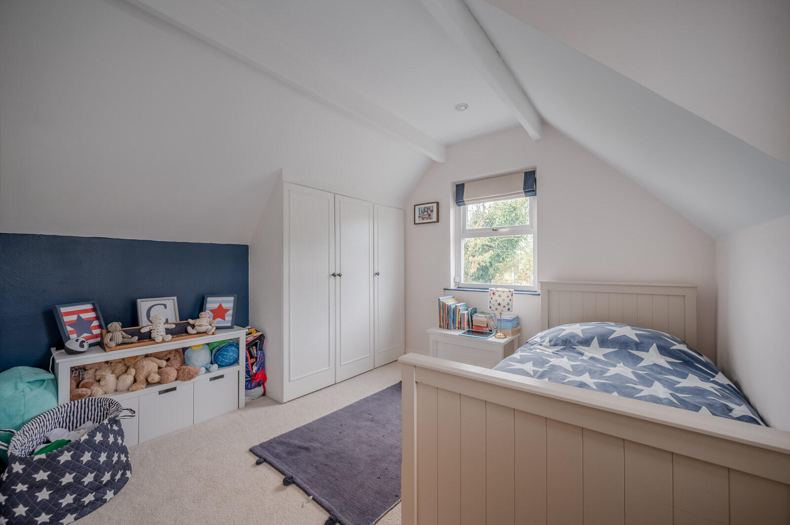 Bedroom Three - 3.33 x 3.21 (10'11" x 10'6") - Dual aspect windows with mature outlook to front, rear and side, range of built-in robes and storage, exposed beams, semi vaulted ceiling.