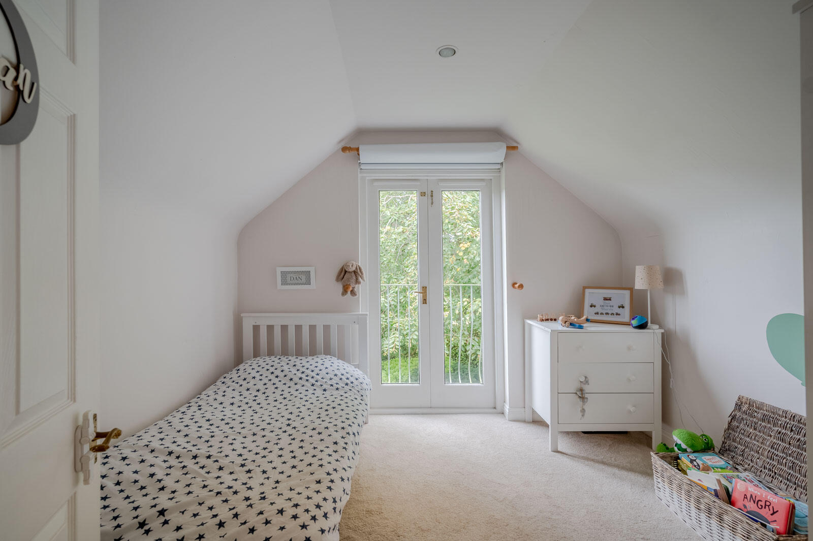 Bedroom Four - 3.09 x 2.82 (10'1" x 9'3") - Vaulted ceiling, recessed spotlighting, double glazed French doors to Juliet style balcony overlooking private mature well tended rear gardens.