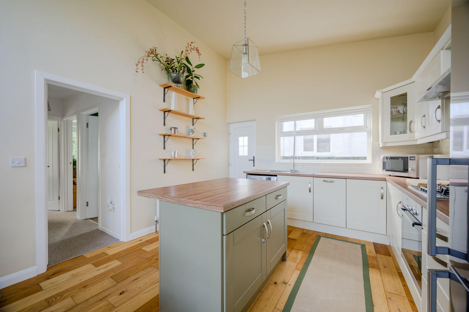 .Three hard wired interlinked smoke alarms and heat alarm in kitchen recently approved by NI Fire Brigade.