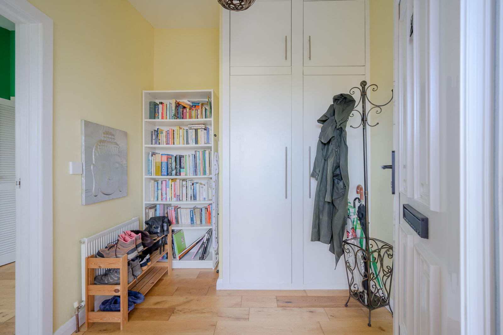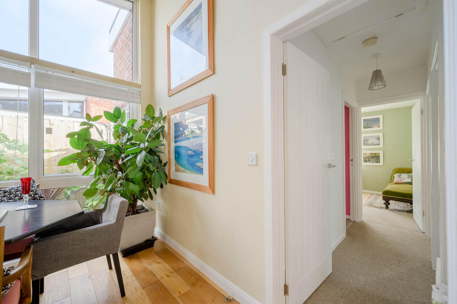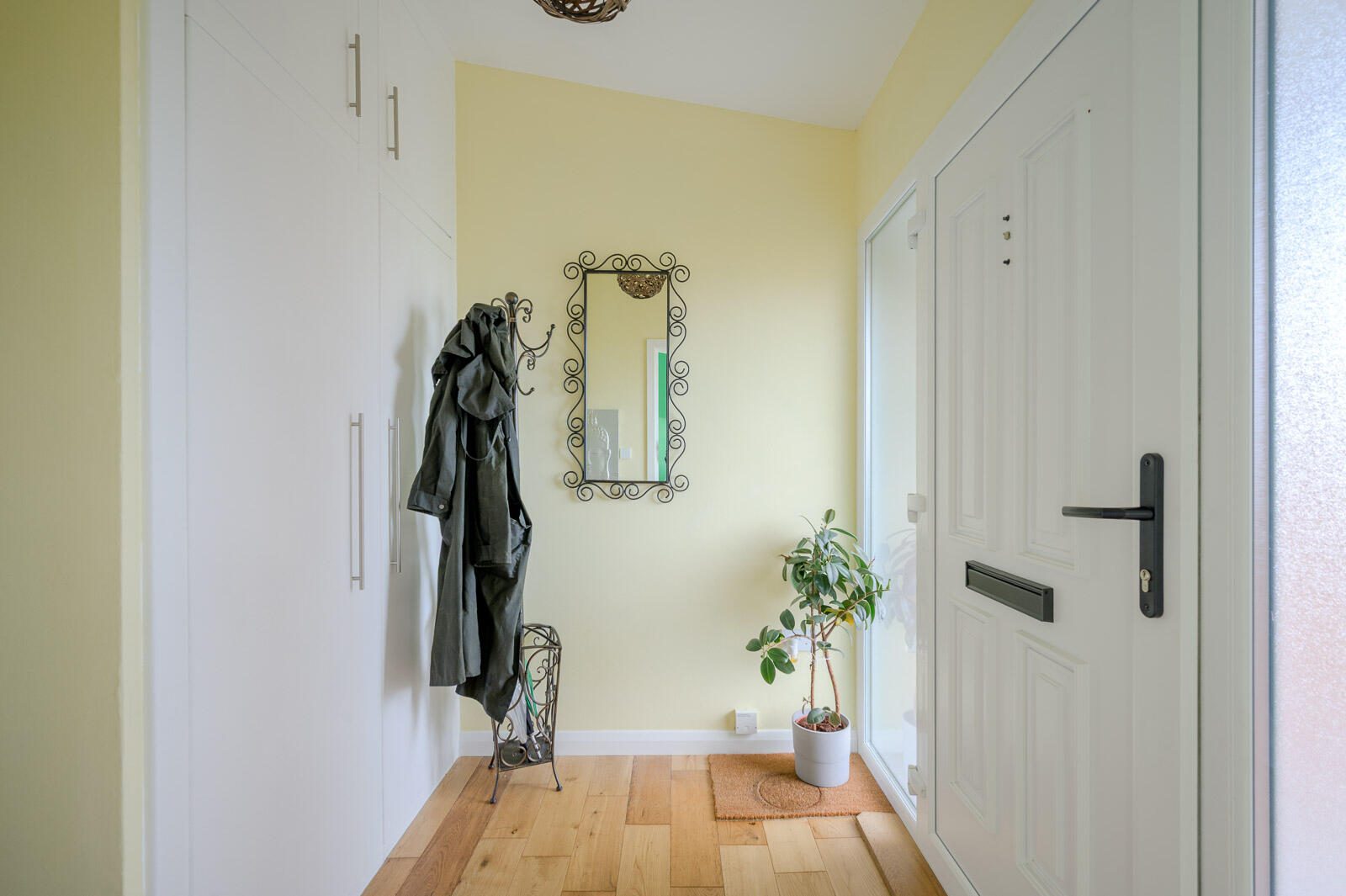 Reception Hall - Vaulted ceiling. Solid oak flooring. Large cupboard with ample space for storage and cloaks.