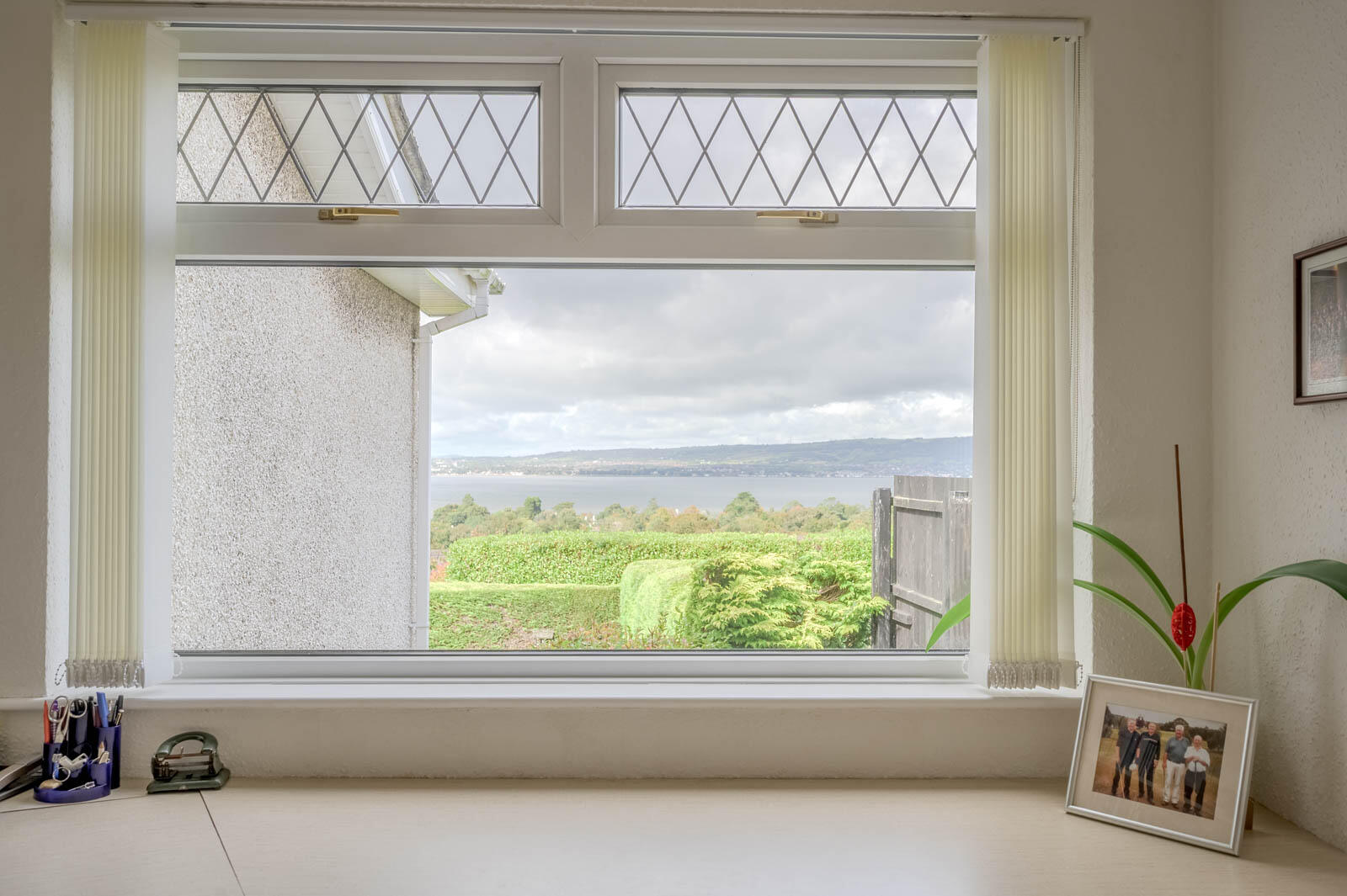Occupying one of the most enviable positions in Strathleven Park, this detached home offers spectacular panoramic views across Belfast Lough to the Antrim coastline and Hills. Rarely does a property come to the market in this sought-after location, combining a generous site, breathtaking outlook, and excellent potential to extend or remodel subject to the necessary consents.
