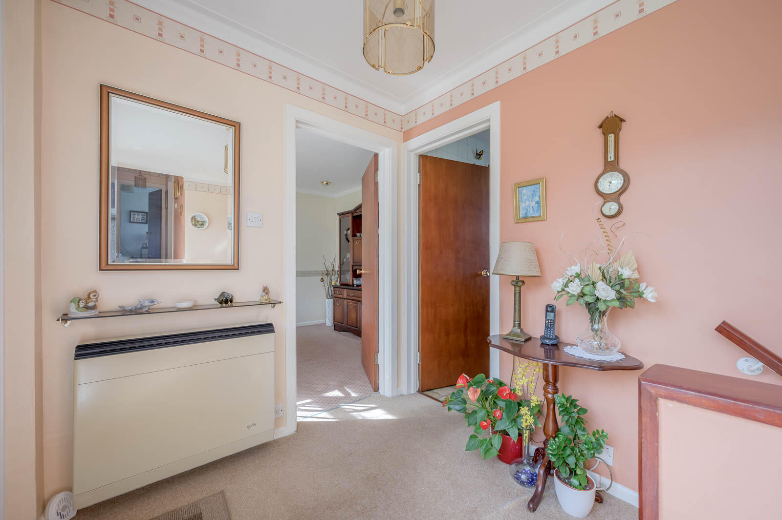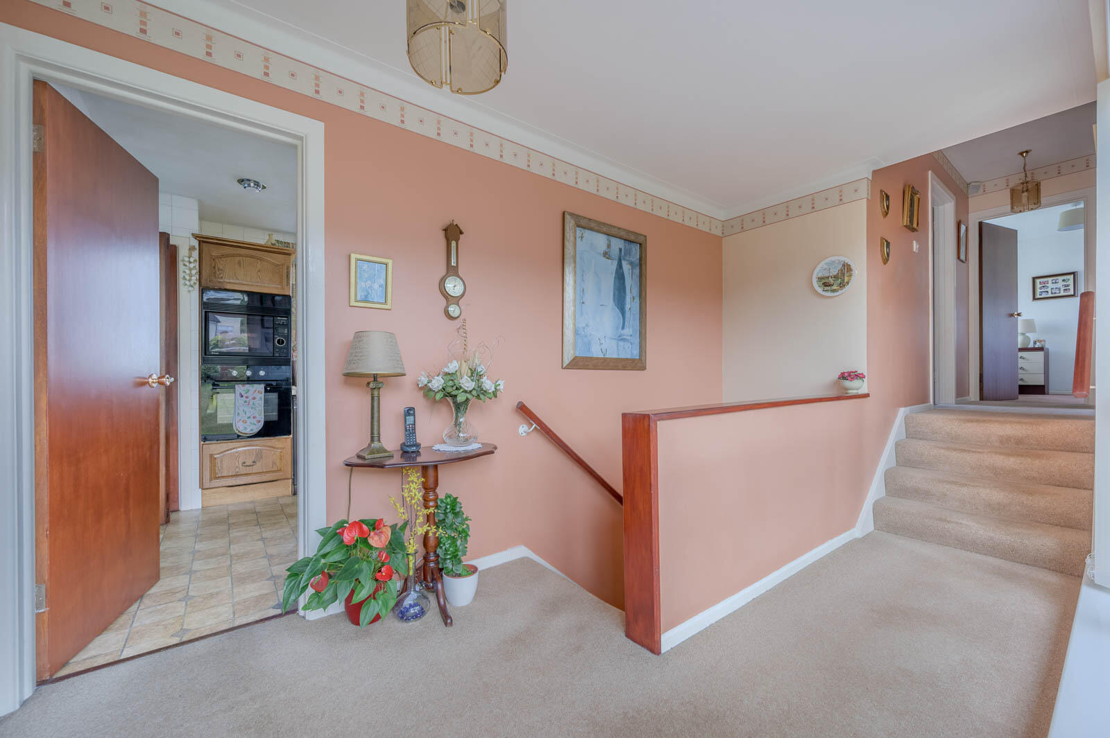 Externally, the property truly comes into its own. The rear garden enjoys a raised patio that captures the afternoon and evening sun, offering an exceptional vantage point for soaking in the views. Dual driveways, a front garden laid in lawn with mature planting, and a sense of space around the property highlight the generous nature of the site.
