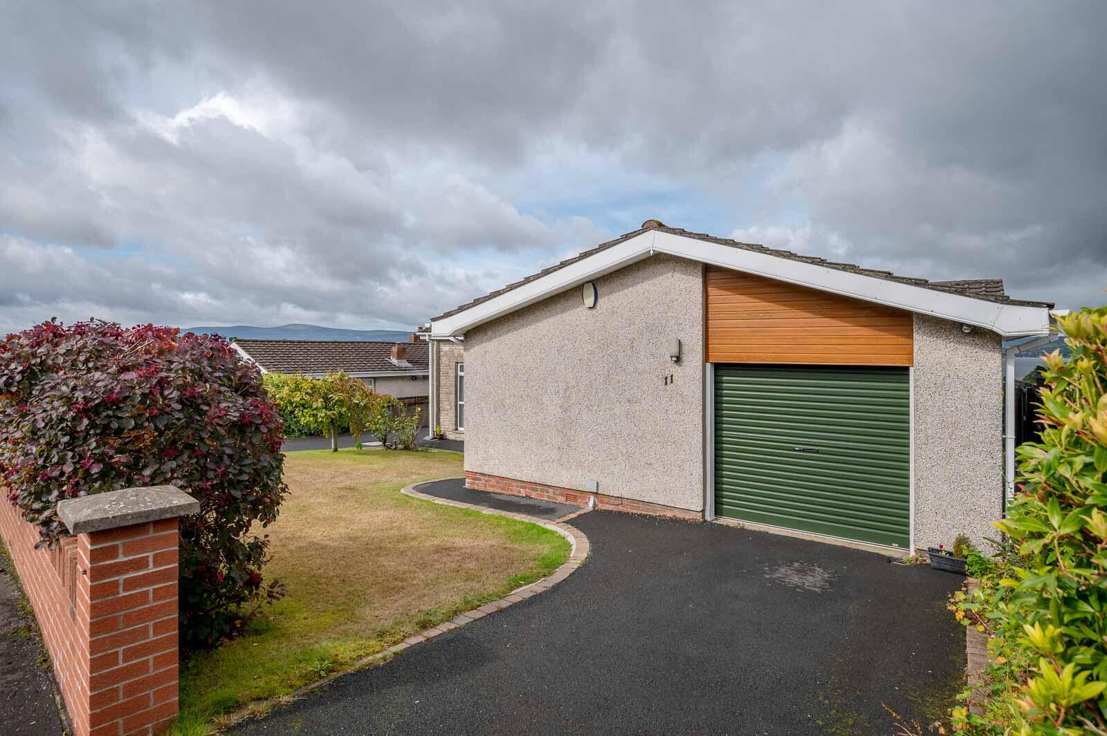 Driveway Parking And Gardens - Rear garden laid in paving with patio getting sun late into the evening, with panoramic views of Belfast Lough to the Antrim coastline and Hills, dual driveways, garden to front laid in lawns with mature planting, uPVC soffits and fascia's, outside tap, outside light.