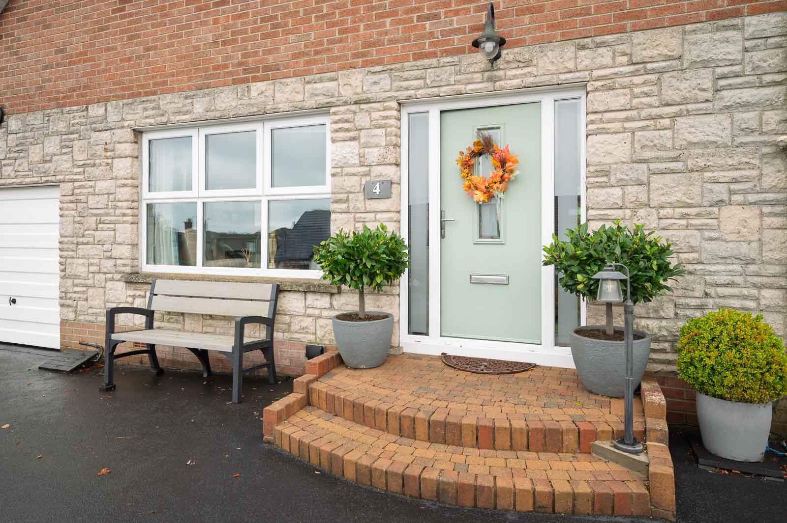 Front Door - Composite front door, central double glazed light, double glazed side light, through to reception hall.