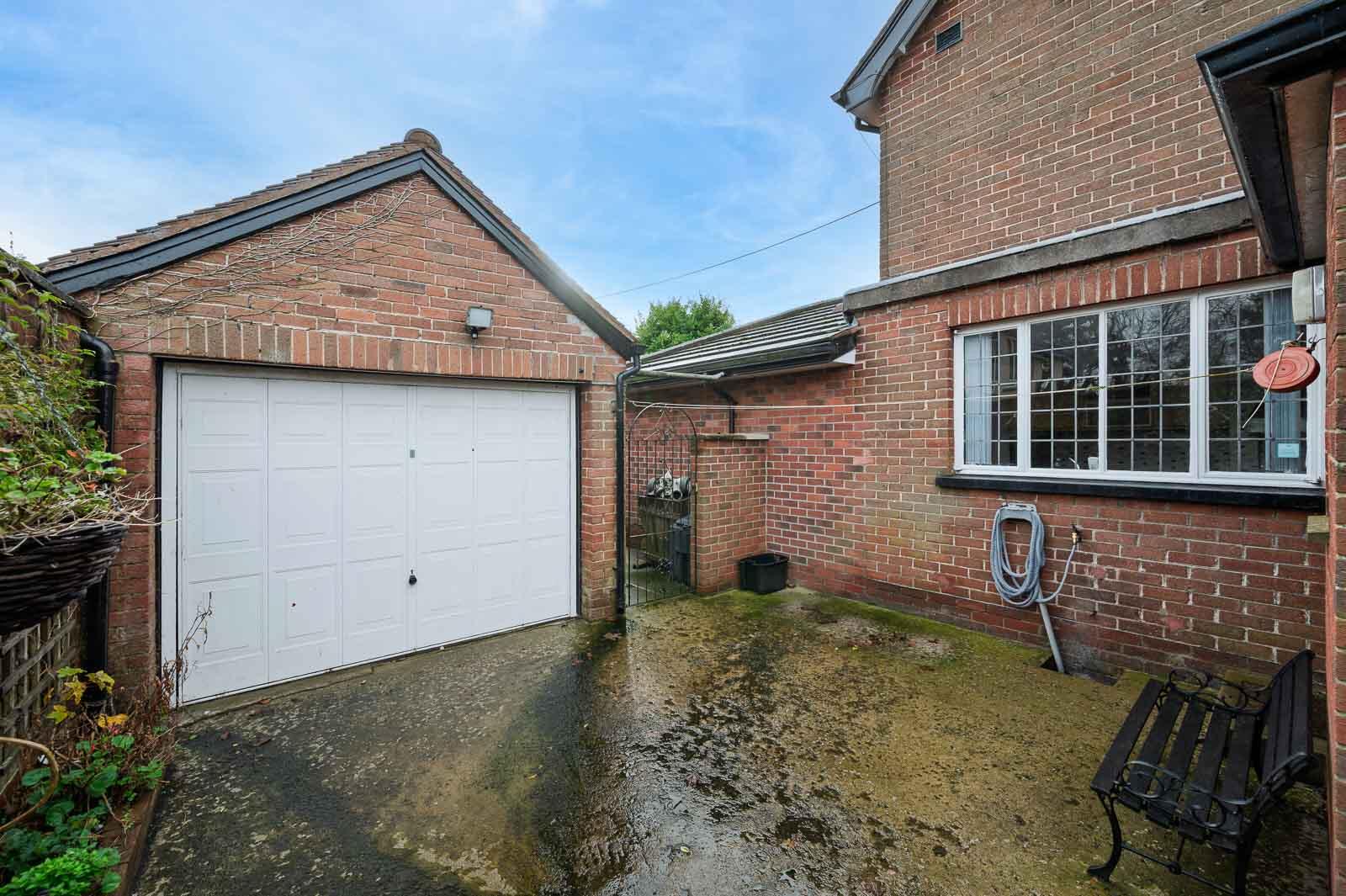 .Ample driveway parking and detached garage with up-and-over door.