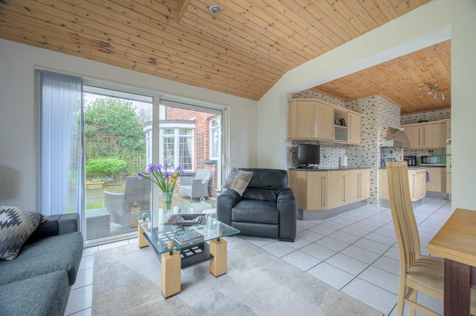 .Kitchen with extended dining/living area and direct garden access.
