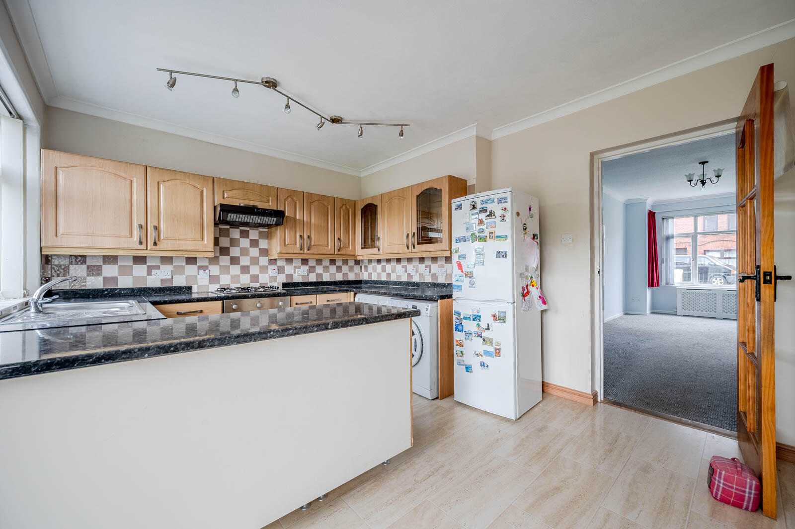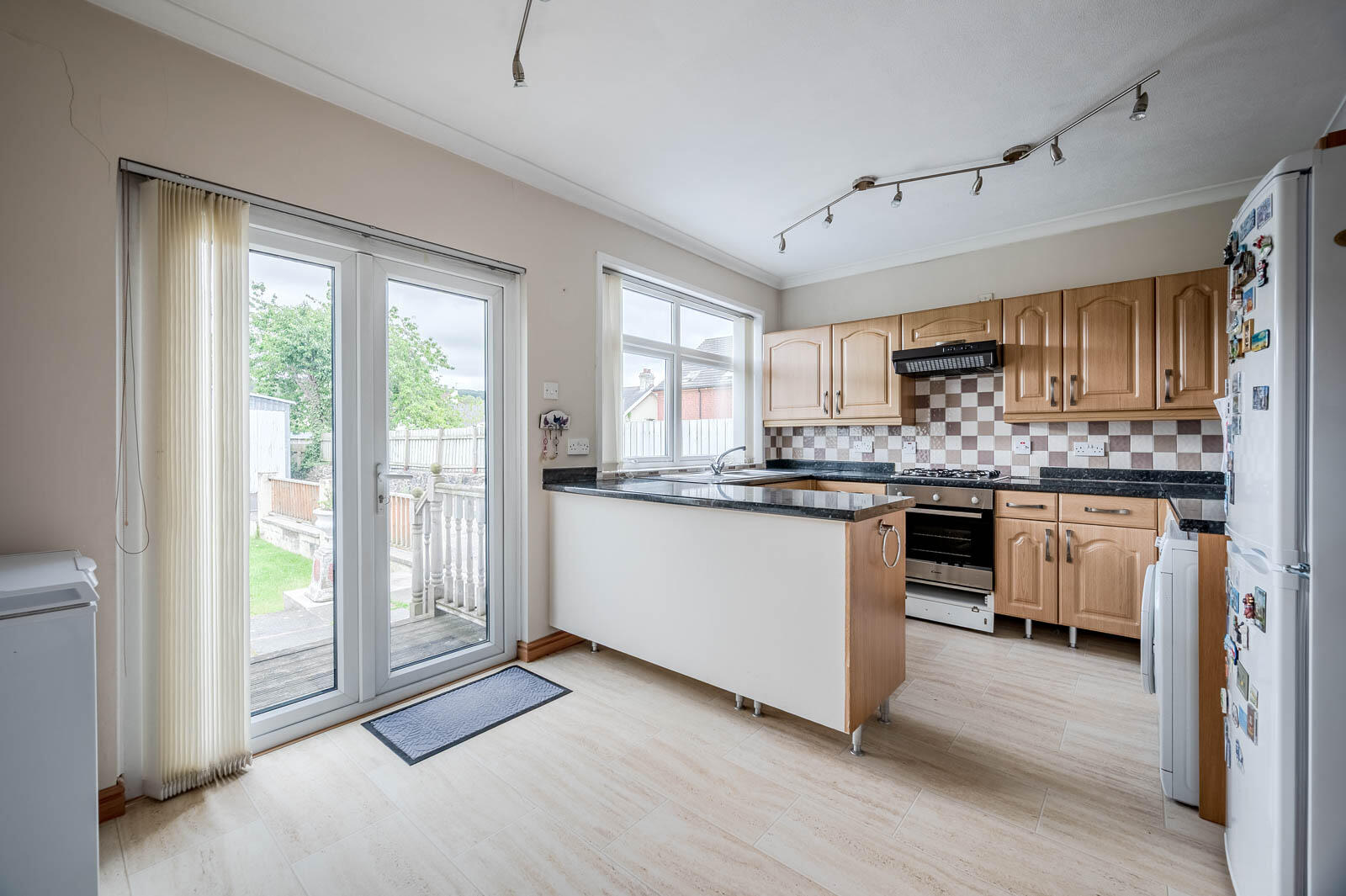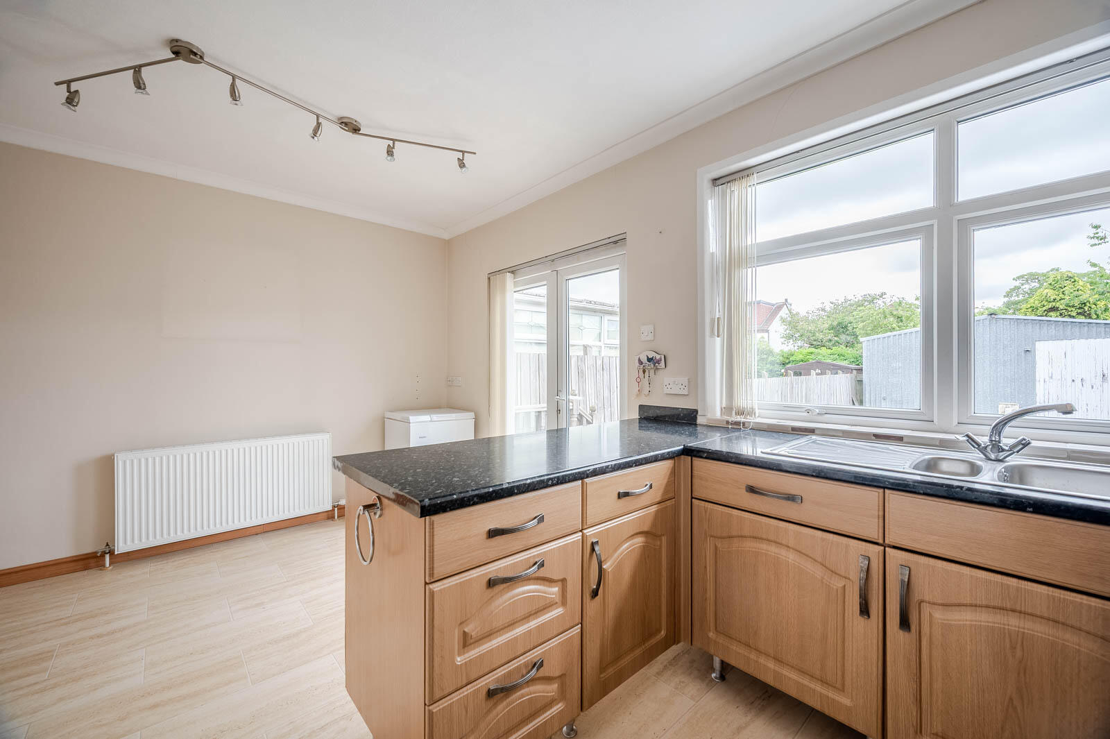 .Fitted kitchen with space for dining and patio doors leading to rear garden