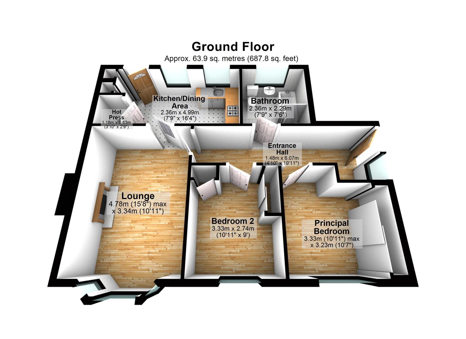 .Two good-sized bedrooms offering flexible accommodation