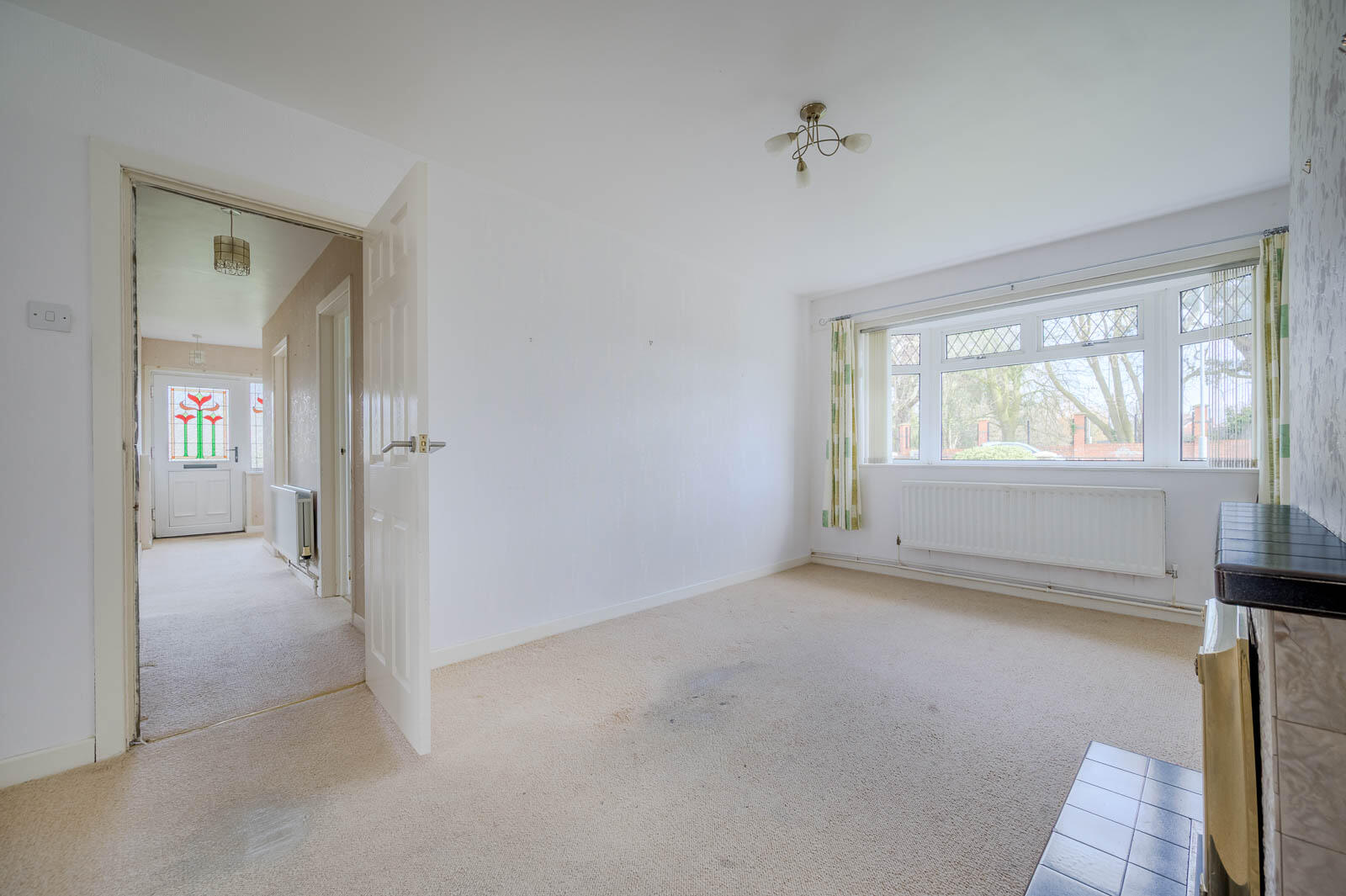 Lounge - 4.78m x 3.33m (15'8 x 10'11) - With outlook to side, central electric fire with tiled hearth surround, timber mantel.