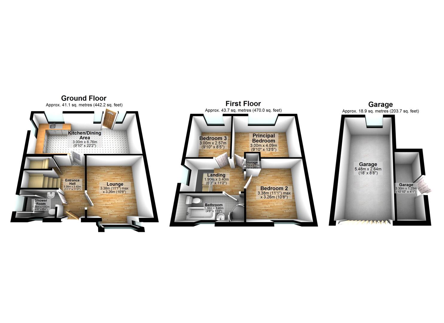 Upstairs, there are three well-proportioned bedrooms, each offering ample natural light, alongside a family bathroom, completing the first-floor accommodation. Externally, the property enjoys a rear garden laid in lawn, ideal for children to play or for outdoor entertaining. The home also benefits from a driveway providing off-street parking and a detached garage, offering additional storage or workspace.