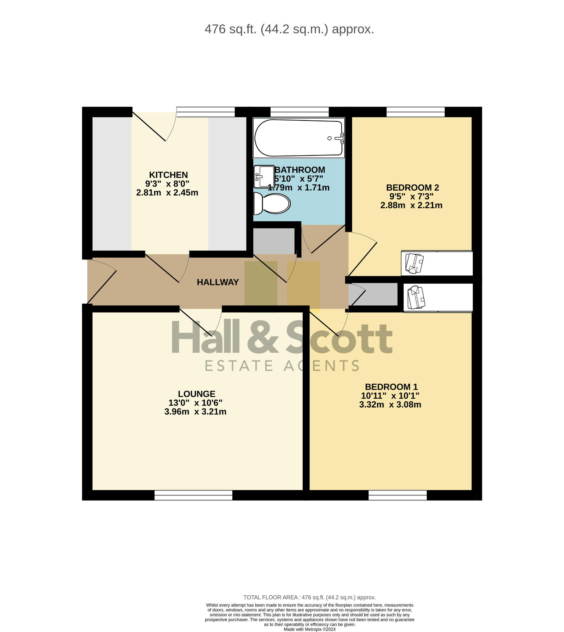 The well presented accommodation comprises; entrance hallway with access to the roof space with ladder and boiler. There is a refitted kitchen with a range of wall and base units, built in oven and hob with extractor hood over and door to the rear porch giving access onto the rear garden. There is a living room to the front and two bedrooms, both with built-in wardrobe recesses and a bathroom.