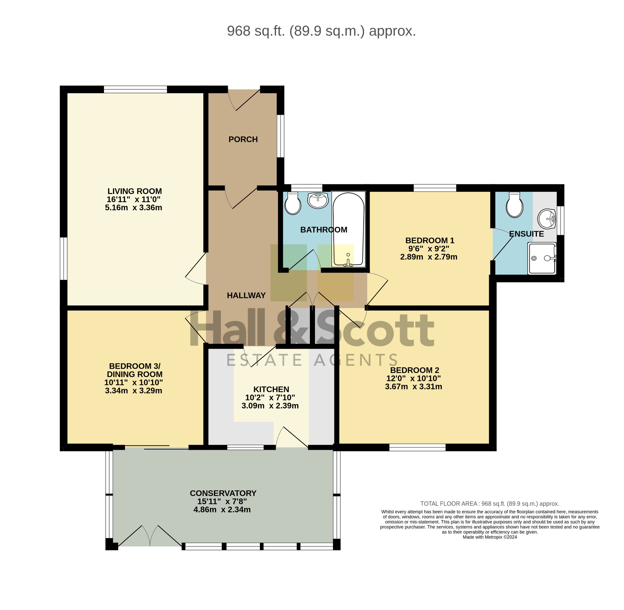 The accommodation comprises; entrance porch, entrance hallway, dual aspect living room, kitchen, fitted with a range of wall and base units, plumbing and space for dishwasher and washing machine. Door into the conservatory, which offers a lovely aspect onto the rear garden. The master bedroom has an ensuite shower room, bedroom 2 overlooks the rear garden with bedroom 3/dining room having patio doors into the conservatory. There is also a bathroom suite.