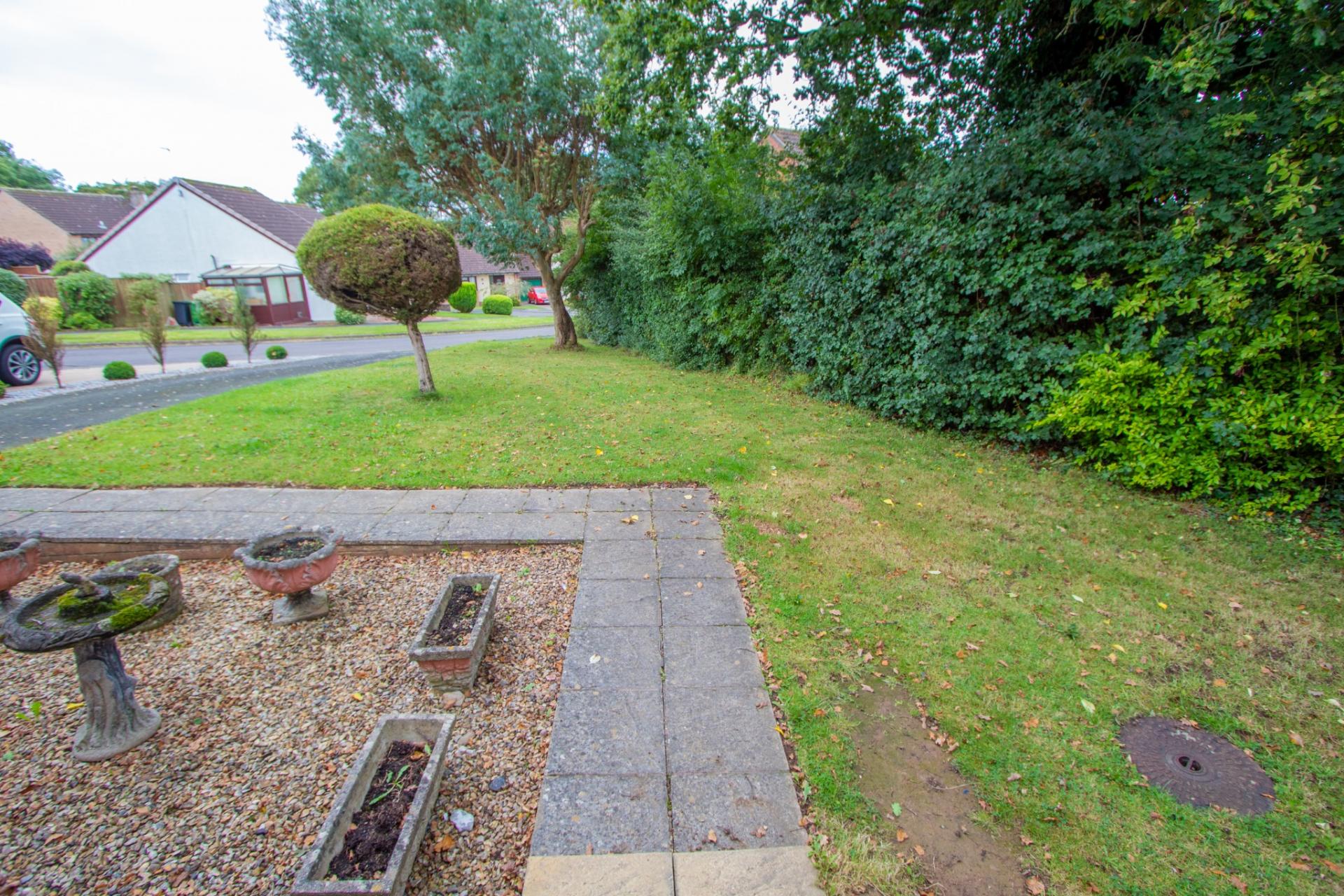 The property has a long front garden laid to lawn with shrubs and gravelled area. Long driveway offering ample parking and which leads to the garage which has an up and over door, light and power. Side pedestrian access on both sides leading to the rear garden which is enclosed and private. Lean-to greenhouse, paved patio, lawned gardens and gravelled area.