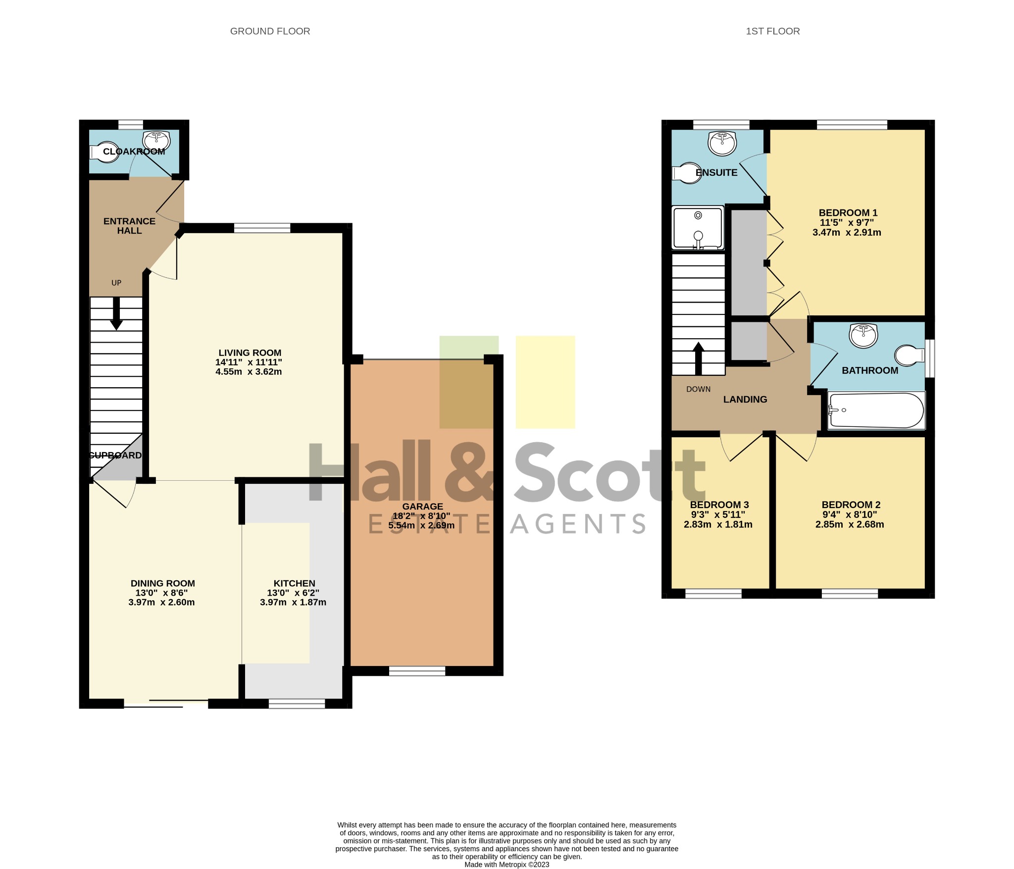 The accommodation comprises: entrance hallway, cloakroom, lounge with archway leading through to the dining room which has patio doors onto the rear garden. From the dining room there is an archway through to the kitchen, which is fitted with a range of wall and base units, worktop surfaces, built-in oven and hob with extractor hood over. On the first floor there are three bedrooms; the master bedroom with two built-in double wardrobes and en-suite shower room, and separate family bathroom suite.