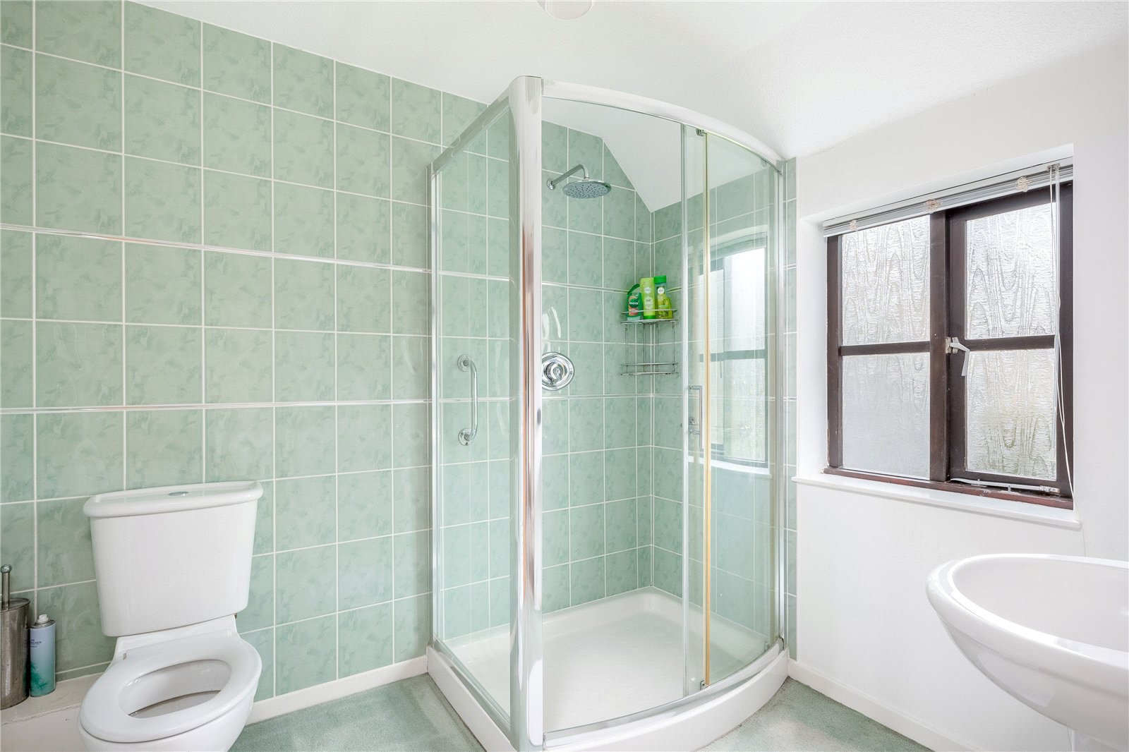 Bathroom Window to rear aspect, low level WC, hand wash basin, shower cubicle with wall mounted shower.