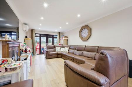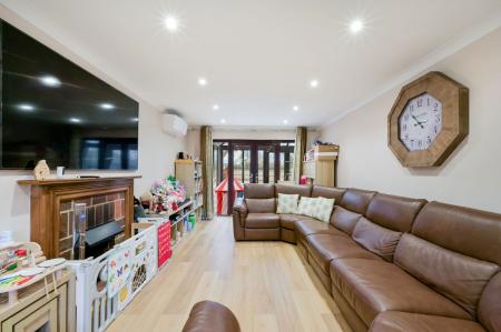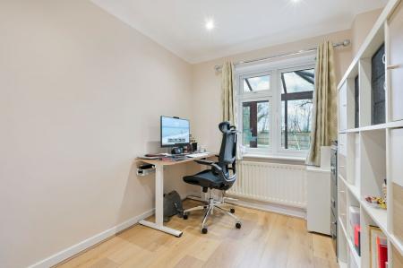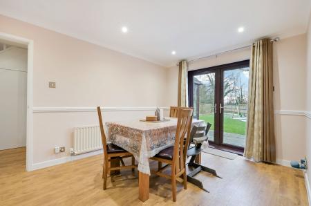 Outside you will find a manicured large south facing garden with mature trees and shrubs and mainly laid to lawn. There is a well placed patio perfect for outside dining and BBQs with the family.
