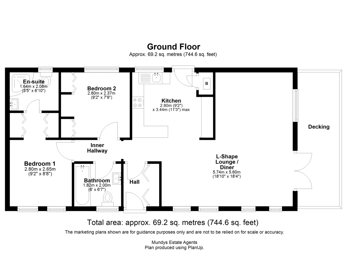 - Spacious L-shaped lounge/diner with French doors to decking