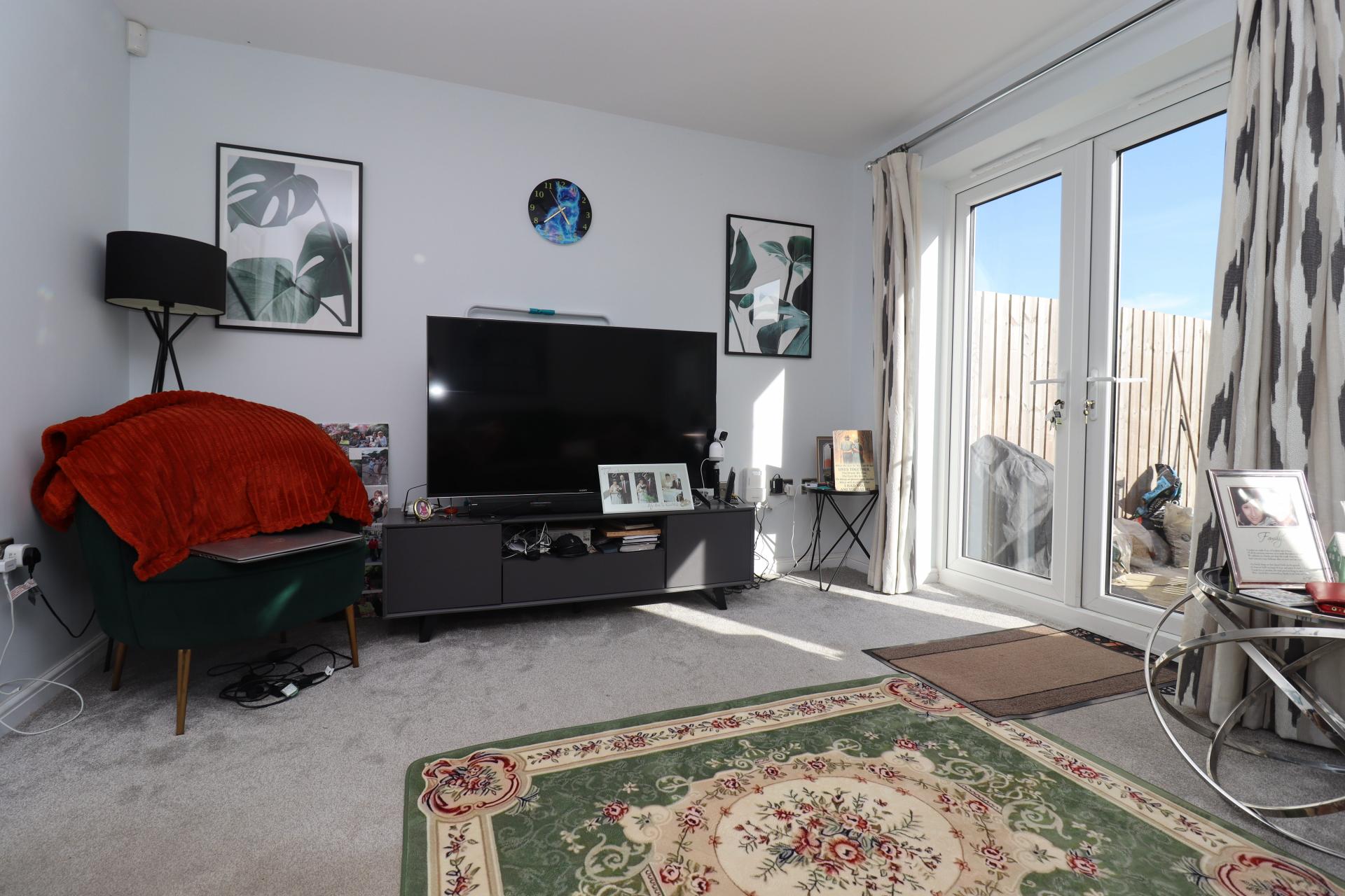 LOUNGE 13' 5" x 10' 10" (4.09m x 3.3m) With UPVC double glazed window, French doors to the rear garden and radiator.