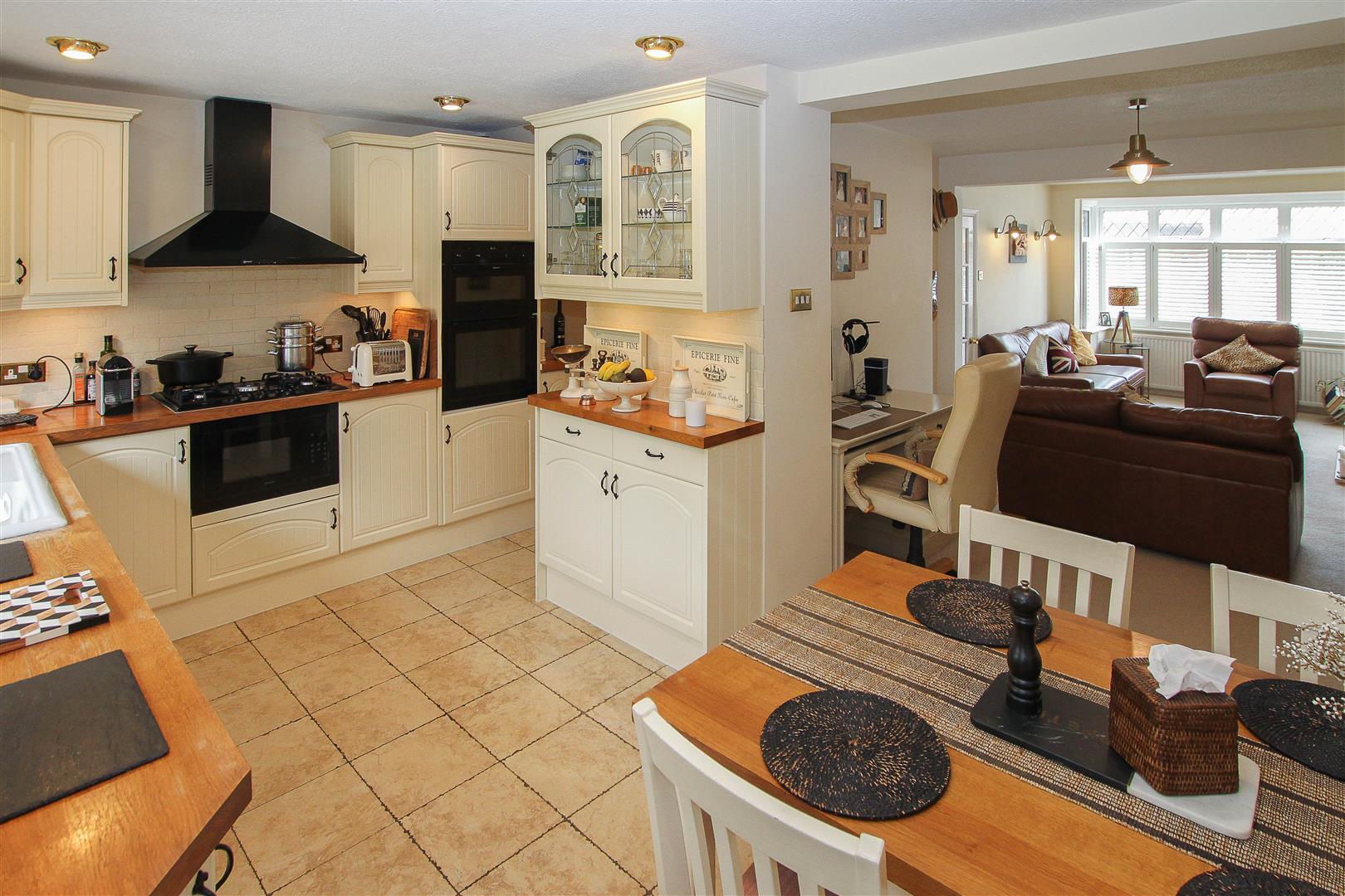 Kitchen / Diner - 4.85m x 3.15m (15'11 x 10'4) - Cream wall and base units with glass display cabinet. Integrated ovens, microwave, dishwasher and ample space for further appliances. Door to garden and window to rear aspect. Open to :