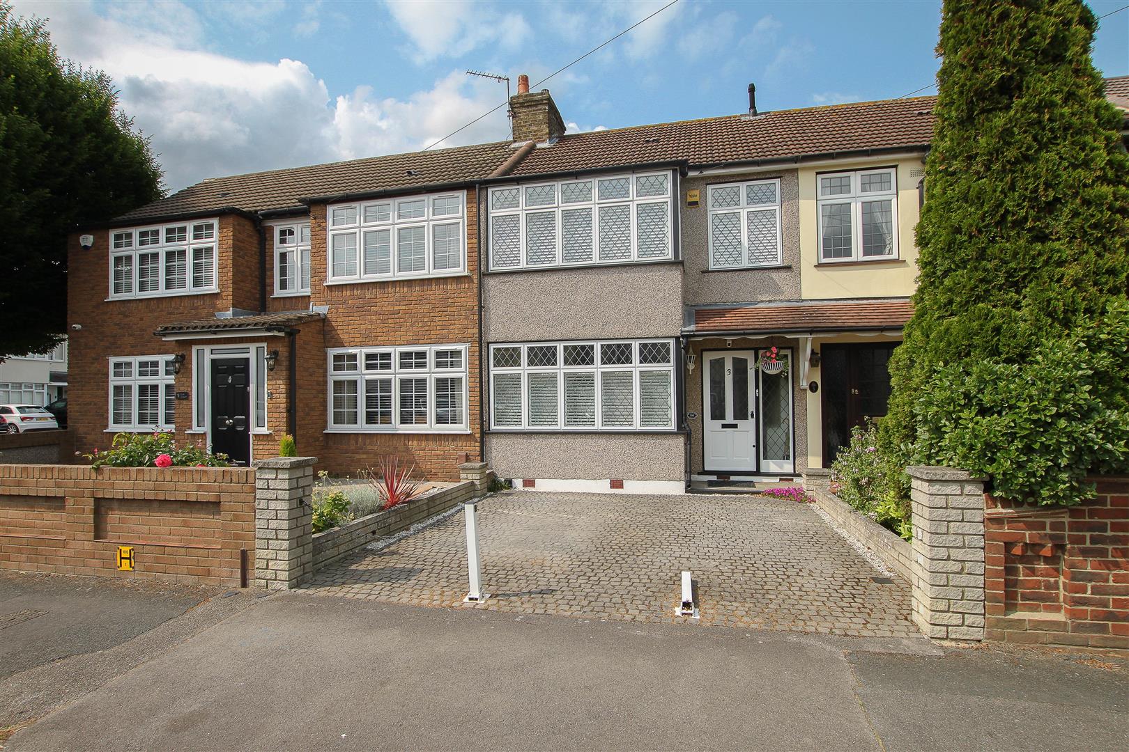 We are delighted to bring to market this well-presented and extended, three-bedroom terrace house which benefits from a spacious open-plan ground floor, beautifully kept rear garden and secure off-street parking by way of a driveway with security posts along with a gated, double garage at the rear. Families with children will note that you are within walking distance of infant, junior and secondary schools, including Redden Court which boasts an 'outstanding' Ofsted rating; also, within easy reach is New City College, Ardleigh Green for students studying further and higher education. Gidea Park and Harold Wood Train Stations are within a mile from the property and for road users, the A127, A12 and M25 are all easily accessible. Viewers will also be keen to know that our Vendor is interested in a vacant property and therefore the upward chain will be complete.