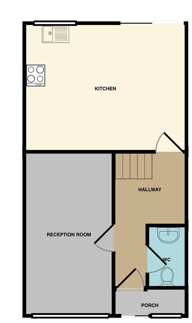 The ground floor welcomes you with a practical entrance hall leading to a convenient WC, ideal for busy mornings and guest use. A flexible reception room completes this level, easily adaptable as a fifth bedroom, home office, playroom, or snug, offering valuable extra space that many townhouses lack.