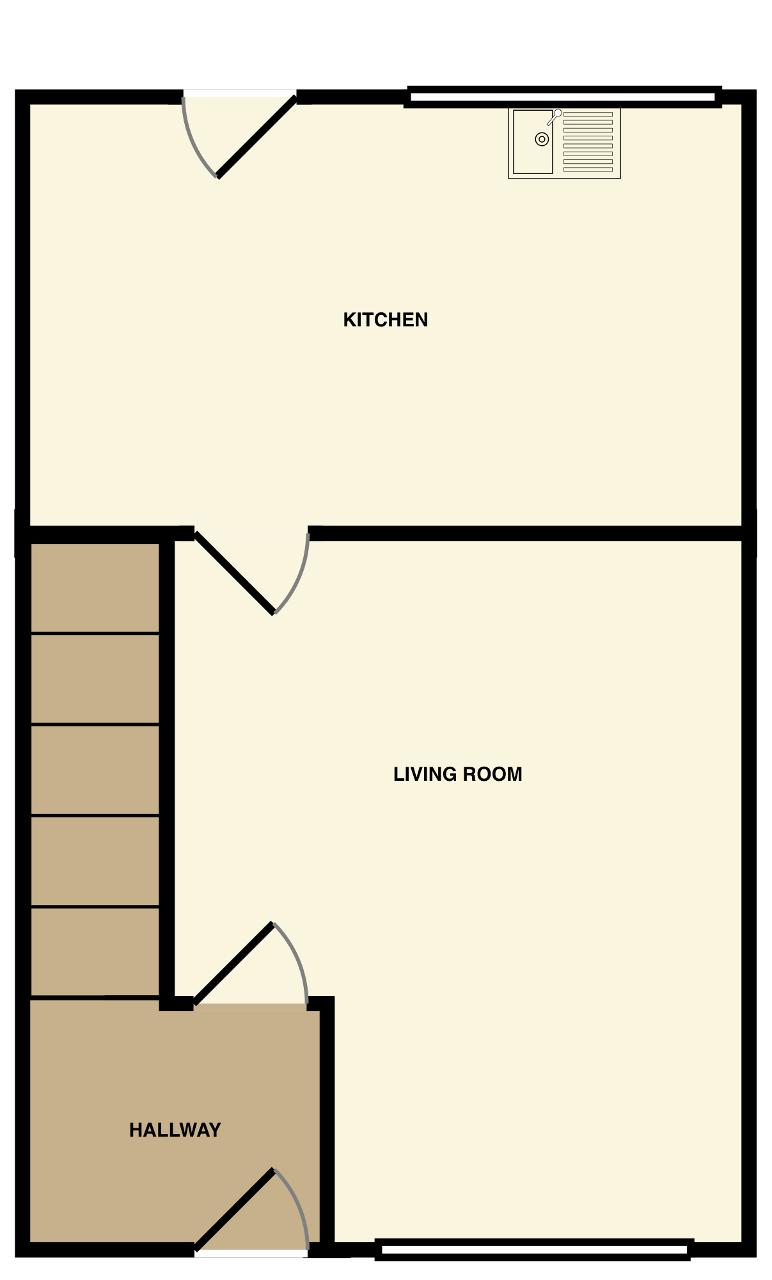 The property is offered with no onward chain and features a generous layout across two floors. The ground floor includes spacious reception areas and a separate kitchen, while the first floor comprises three well-proportioned bedrooms, a family bathroom, and a separate WC. Though in need of updating, the accommodation provides a solid footprint ideal for those looking to personalise their living space.
