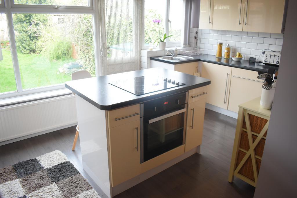The kitchen is the real showpiece of the property and once again features the wooden effect flooring. The kitchen features a range of cream eye and base level fitted units along with granite effect worktops. There is an island which features an integrated hob and oven as well as the rest of the kitchen housing an integrated washing machine, tumble dryer, dishwasher and fridge-freezer. There are also large double glazed windows looking out onto the rear garden as well as a double glazed door opening out onto the garden.