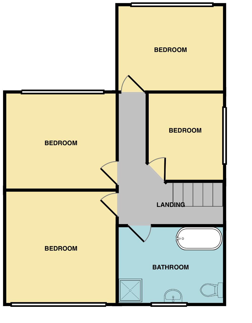 Heading up the carpeted staircase onto the first-floor landing, there is a loft that has a loft hatch and five wooden doors. Four of the doors open onto all four bedrooms leaving the final door to open into the first-floor bathroom.