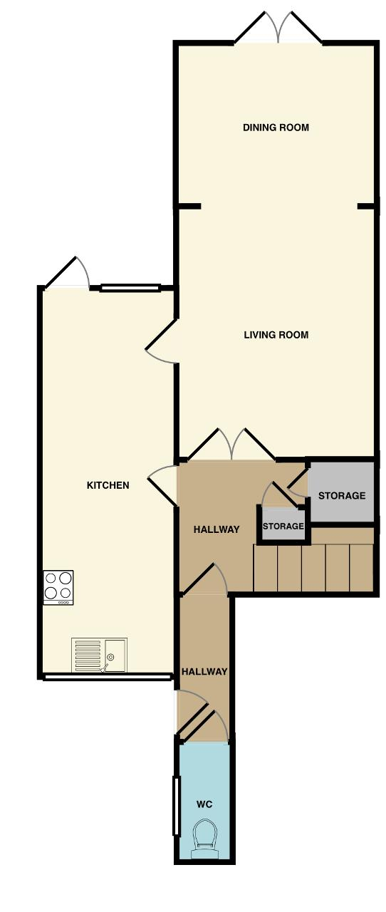 The modern kitchen is both practical and stylish, featuring plenty of counter space, storage options, and room for culinary adventures as well as an integrated dishwasher. Whether you are preparing a quick snack or trying out a new recipe, its an ideal space for making the most of every meal. Also on the ground floor is a handy WC, a must-have for any busy household, making life that little bit easier and more convenient.