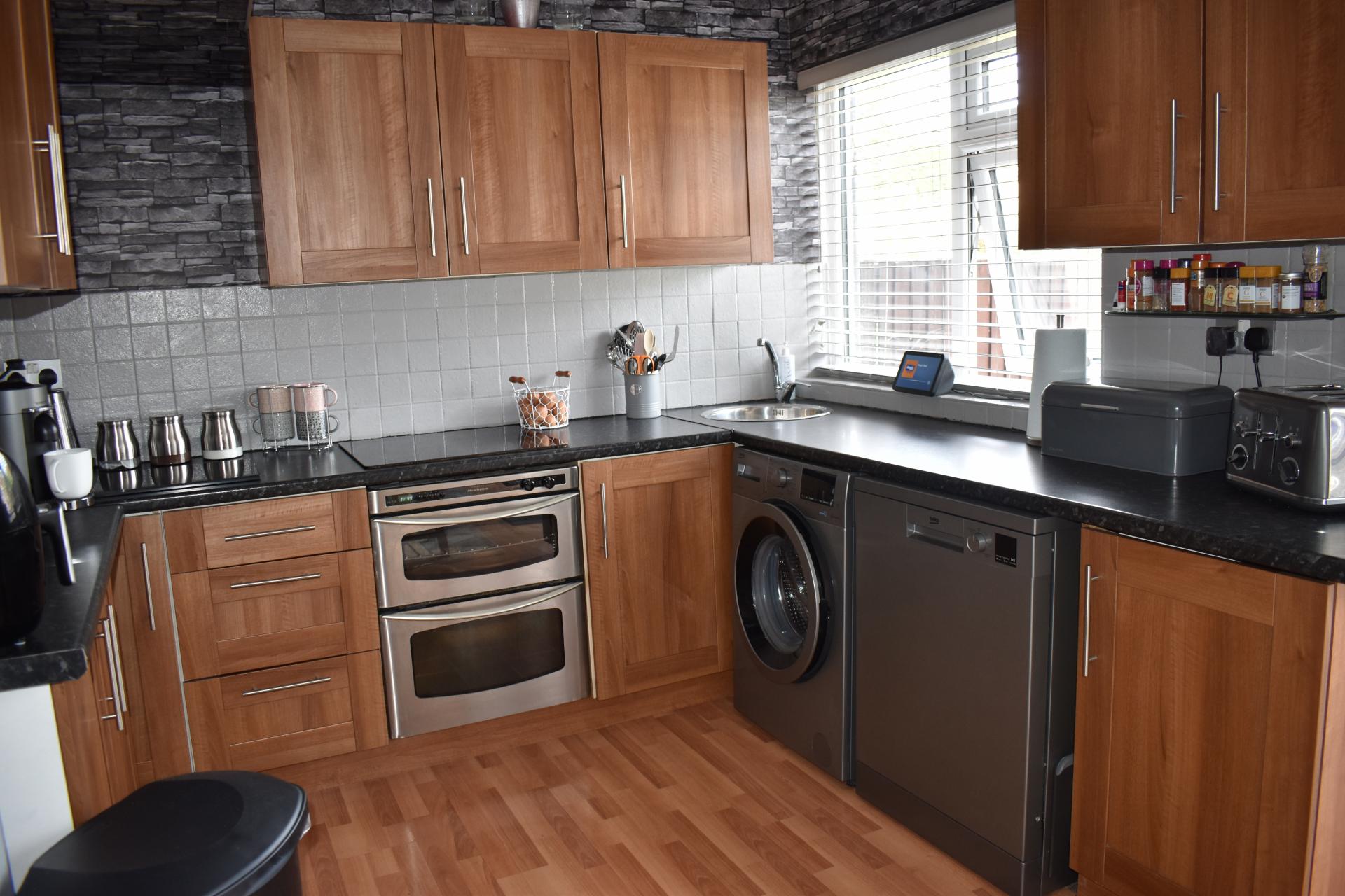 BEDROOM TWO: 11’11 X 8’3 (to fitted wardrobes): Double glazed window to rear. Painted papered walls, carpeted flooring, fitted wardrobes with further built-in storage cupboard, radiator and power points.