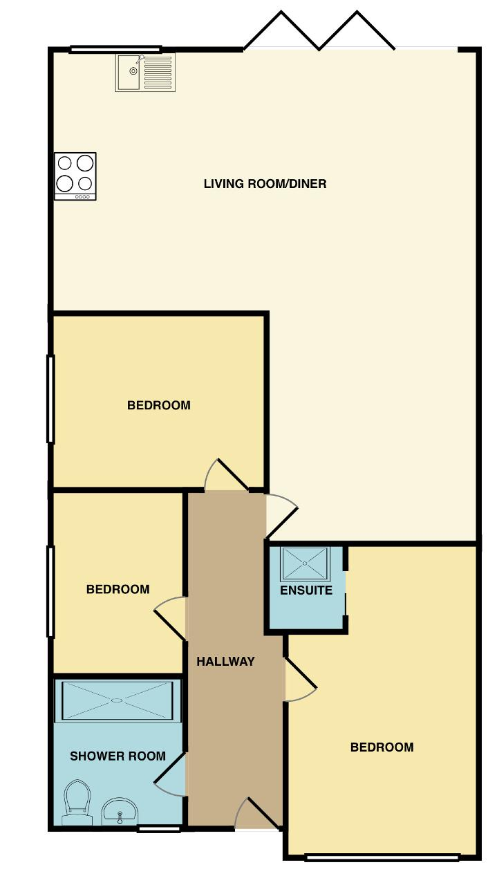Accommodation is both well-proportioned and thoughtfully arranged, with Bedroom One benefiting from the comfort and privacy of a modern en-suite shower room. The remaining bedrooms offer flexibility to suit a variety of needs, whether as guest rooms, home offices or additional family space.