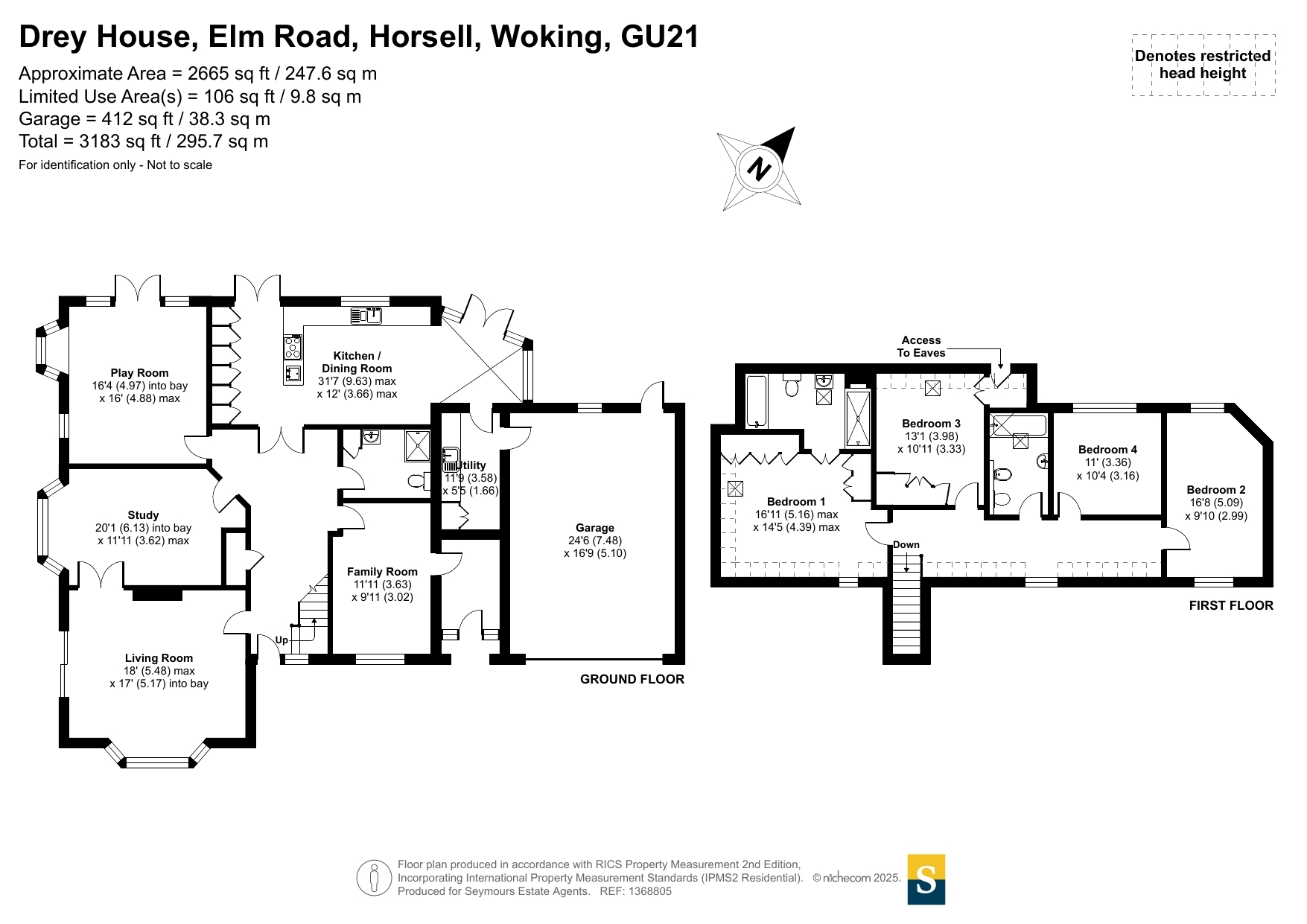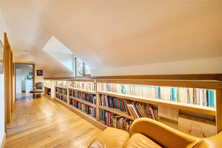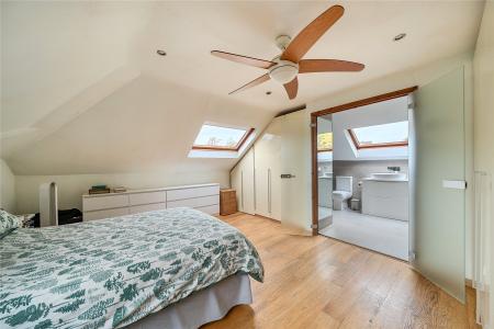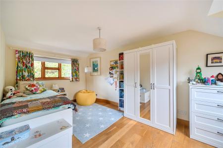 Upstairs, there are four well-sized bedrooms, including a generous principal suite with an en-suite shower room and built-in storage. The additional bedrooms are complemented by a modern family bathroom and useful eaves storage.
