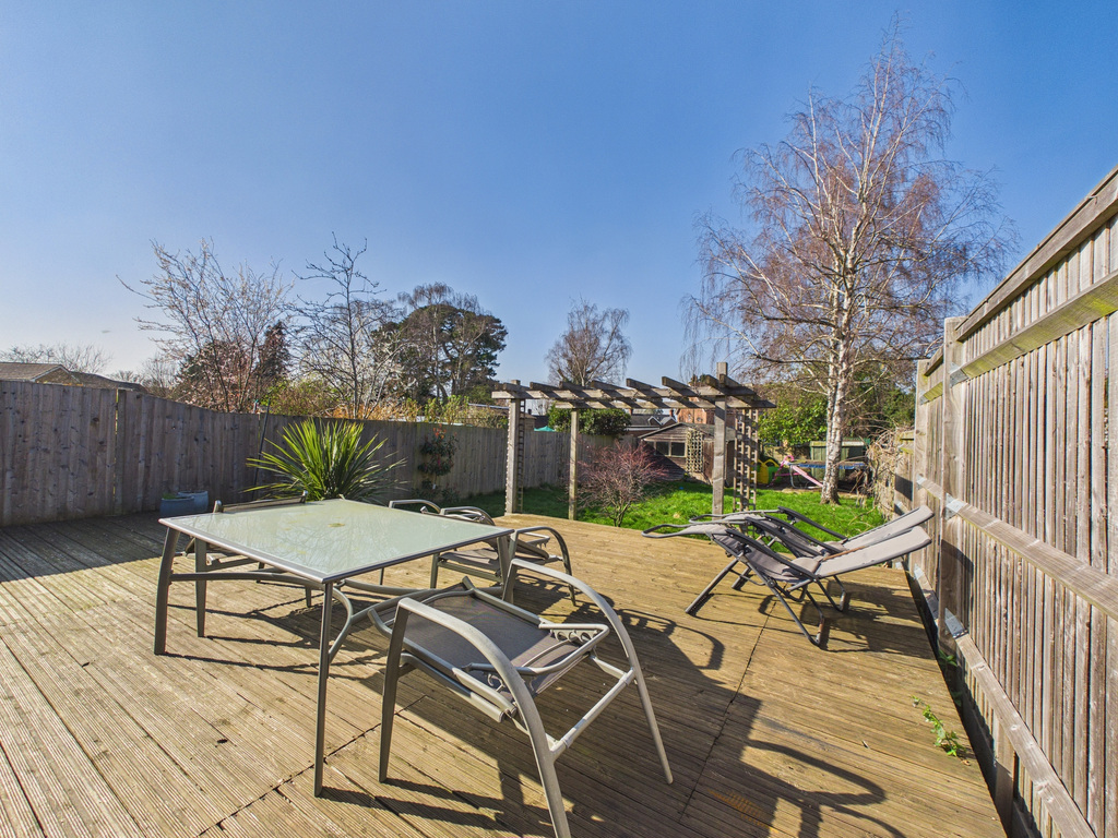OUTSIDE - The property offers attractive outdoor space, with an appealing rear garden. To the front there is Driveway space for at least 2 cars. To the rear of the house there is an extensive west facing garden, with a large paved patio that leads to an expanse of lawn. You can also find a large shed and extra storage sheds at the end of the garden.