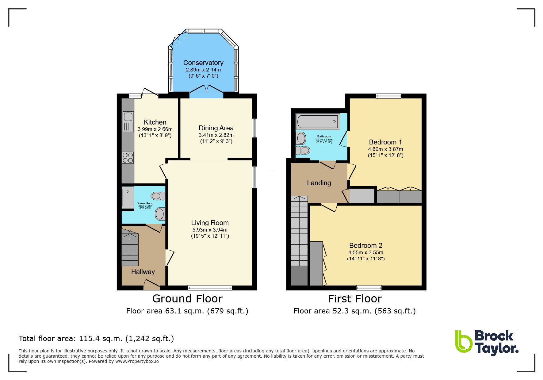 The property offers good sized accommodation, arranged across two floors and is presented in good order. The accommodation is approached through an entrance hall with stairs leading upstairs and a door through into a spacious living room, which is flooded with natural light and is a very generous size. This leads into a kitchen space with plenty of cooking areas, worktop space and a good range of modern matching floor and wall mounted units with integrated hob and oven. To the other side of this you will find a pleasantly sized dining area which then leads through to a fantastic conservatory space filled with sunlight perfect for relaxing in the summer evenings. Then to the first floor where you can find two double bedrooms, both featuring built in wardrobe space and then a Jack and Jill bathroom fitted with a white suite off of the master bedroom.