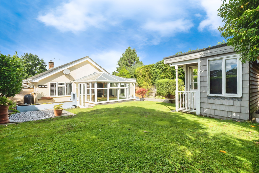The property is set on a good-sized, secluded plot, with a gravel driveway to the front of the property providing driveway parking for multiple vehicles, with a raised brick retaining wall, mature flower beds and hedging. There is dual side access, with concealed storage to the Northern side and a gated storage area to the Southern side. Both sides lead into an attractive secluded rear garden, that has a sheltered patio area set adjacent to the side of the conservatory and further patio area with steps rising to an area of lawn, with mature flower and shrub borders, fencing and hedging. The garden also features a timber outbuilding, currently used for storage, that could be adapted to create a home office or gym.