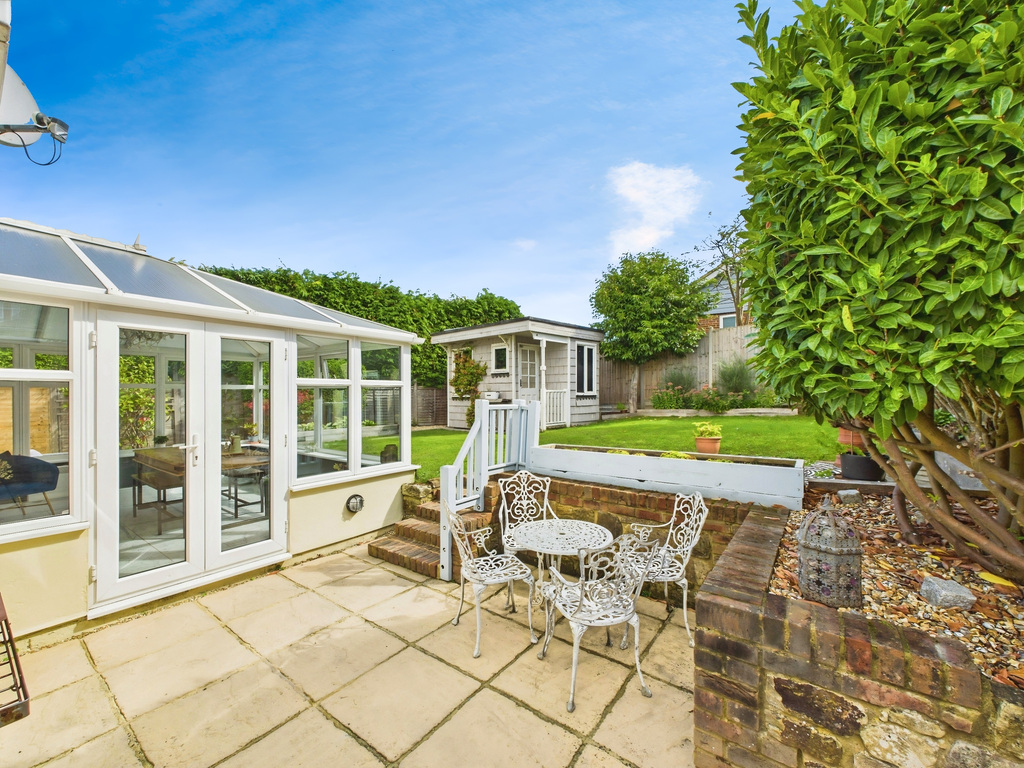 The property offers good-sized accommodation, that has been extended to create well-presented and flexible living accommodation, providing annex potential. There is a spacious entrance hall, with an adjacent study/bedroom, that would make an ideal play room, or home office. The living/dining room, offers a large open-plan space, with ample space for both sofas and a dining table. A feature fireplace adds character. An inner hallway allows access to a contemporary fitted kitchen, equipped with a good range of modern base & eye level units and a central island, that in turn leads into a large double-glazed Conservatory. The main bedroom suite, features a contemporary en suite shower room and walk-in wardrobe equipped with an excellent range of fitted shelving and hanging space. There are two further double bedrooms, that flank a modern white bathroom suite and a utility/storage room.