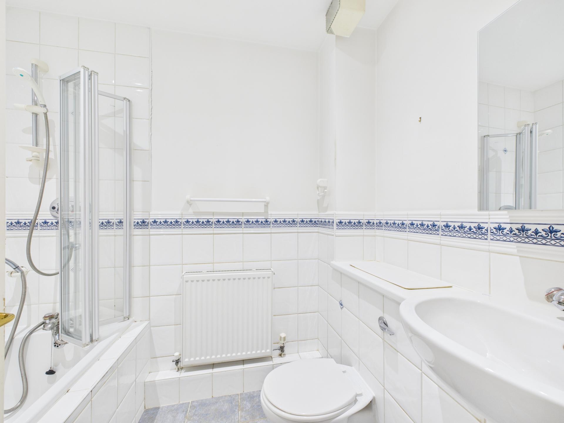PROPERTY  Entering the apartment, you are met with an entrance hall, with multiple built-in storage cupboards and a door that leads to the bathroom featuring a modern white suite with a full-sized bath, and shower above the bath. The bright double bedroom has two large windows that flood the room with natural light. It also boasts ample space for free-standing storage and additional bedroom furniture and includes built in wardrobes. The kitchen is a great size filled with plenty of floor and wall mounted storage space and boasts built in appliances such as a fridge-freezer, dishwasher and washing machine. The spacious lounge measures 20'9ft and comfortably accommodates both living and dining areas. Two windows allow in plenty of natural light, creating an open and airy feel throughout the living space.