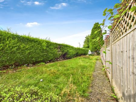 GARDEN & PARKING  The property is set on a generous corner plot, that extends to the front, side and rear of the house. The front garden is open-plan with an area of lawn, a walkway and flower and shrub borders. The side garden offers excellent potential either for extension, or potentially for an additional property to be built (STPP) and is laid to lawn with conifers and a panel fence dividing this area from the rear garden. To the rear there is a patio that leads to a lawned rear garden with mature shrubs, enclosed by fencing with gated side access. To the rear of the garden there is a detached garage with up and over door and parking set to the front of the garage.