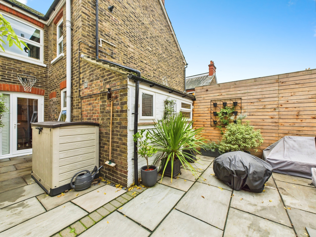 To the rear of the property there is an attractive garden, which offers a good level of seclusion, that has been professionally landscaped to create an inviting outside space, ideal for entertaining. The garden is paved, with attractive porcelain tiling, and horizontal timber cladding, creating a modern, clean and contemporary look. The garden also benefits from an attractive high wall from the adjacent property that creates an interesting architectural feature. The garden is also fully enclosed, with gated side access and enjoys a sought after Westerly aspect.
