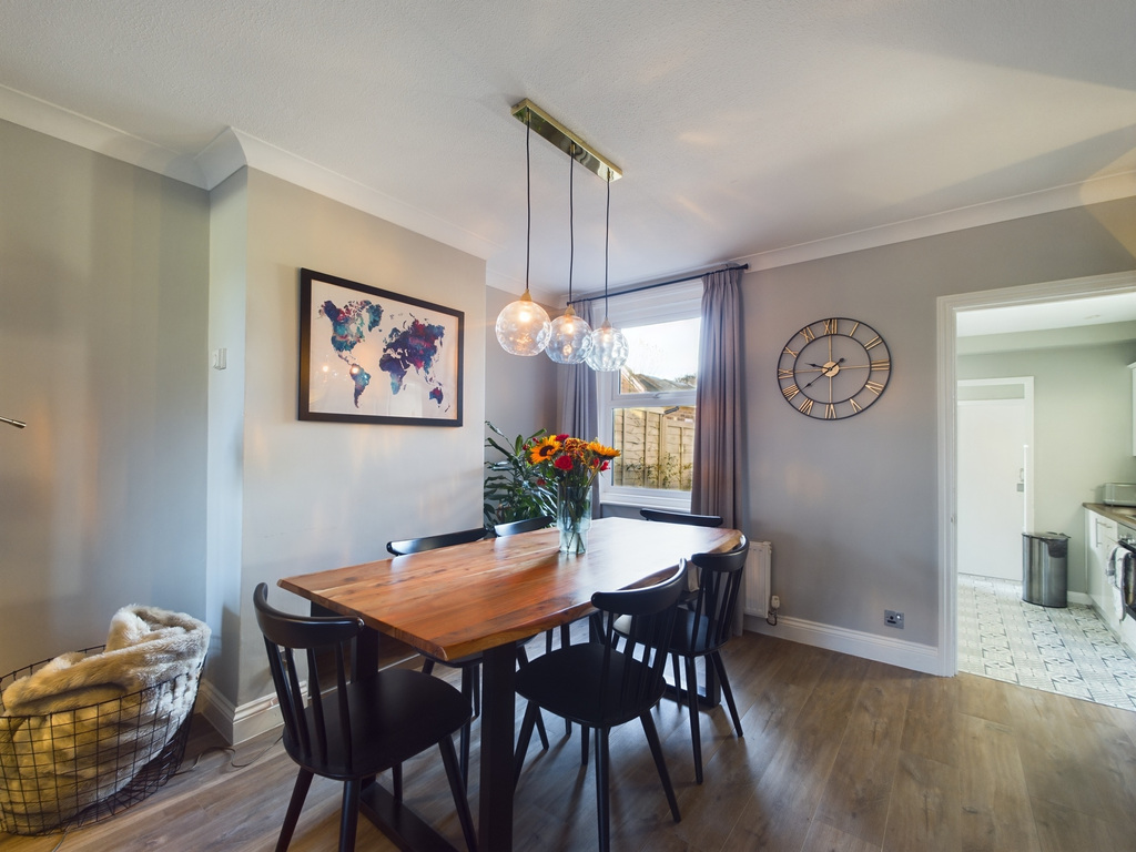 PROPERTY: The front door of this attractive period property opens into a hall, which has stairs rising to the first floor and a door opening into the generous open plan living/dining room, which is double aspect and divided into two rooms. The cosy living room is located to the front of the house and has a bay window flooding the room with natural light and a feature fireplace. The lounge is open to the dining area, which is perfect for entertaining and is located next to the modern galley kitchen that offers a range of appliances and floor/wall mounted units with a small hall leading to a downstairs WC/utility room, a side door opens into the garden. To the first floor is a modern family bathroom with white suite and shower over the bath, two double bedrooms, with the largest stretching across the width of the property. To the second floor, the loft has been extended to create a lovely dual aspect main bedroom with southerly views, ensuite shower room, built in and eaves storage.