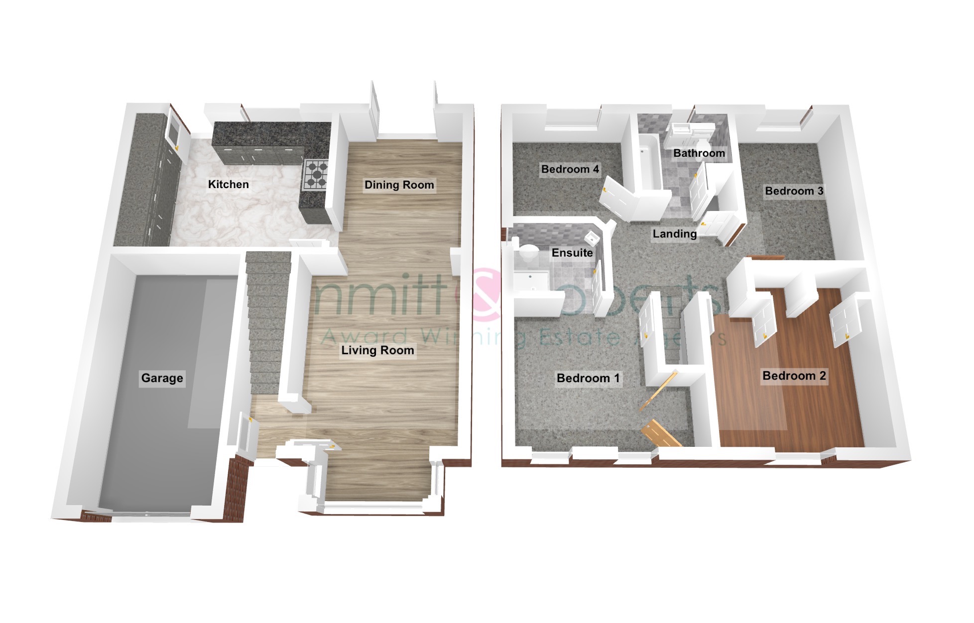 FIRST FLOORLandingBedroom 1 (3.40m x 3.00m)Ensuite (1.80m x 1.60m)Bedroom 2 (2.80m x 3.30m)Bedroom 3 (2.30m x 3.60m)Bedroom 4 (2.30m x 2.50m)Bathroom (1.90m x 2.30m)