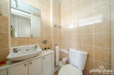 The first floor comprises a bright and spacious reception room, perfect for both relaxing and entertaining, alongside a separate fitted kitchen with ample storage and worktop space. A convenient guest WC is also located on this level, enhancing everyday functionality.