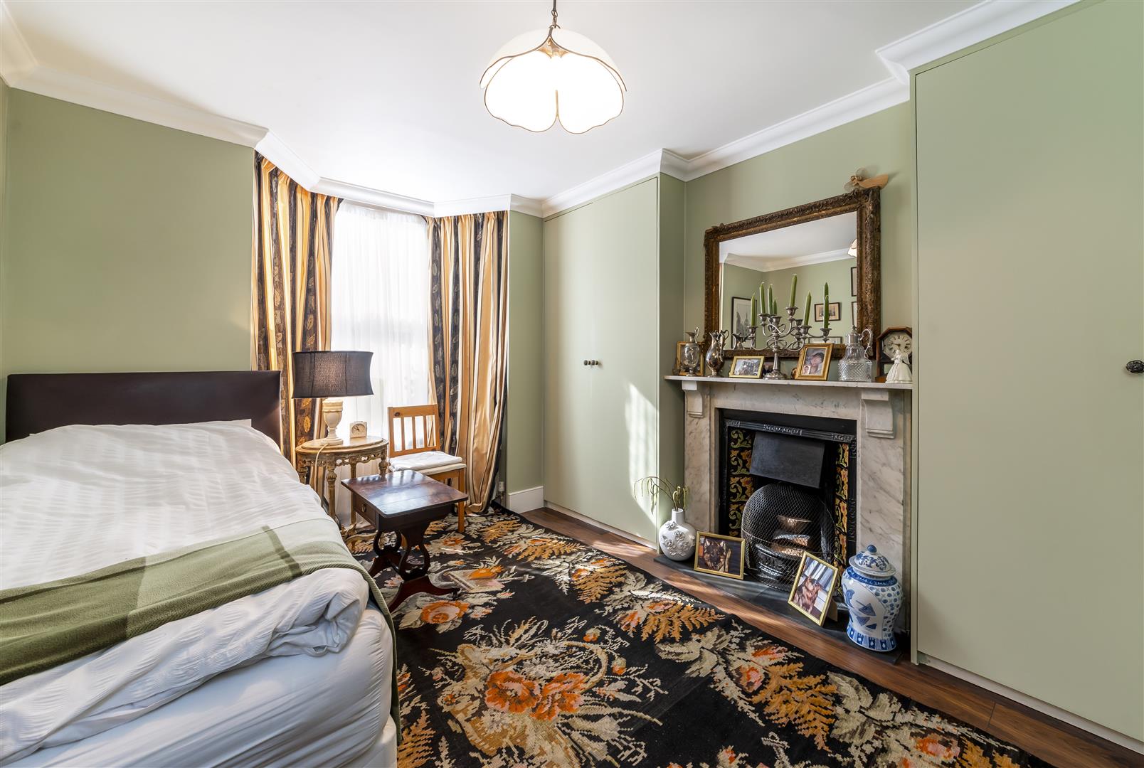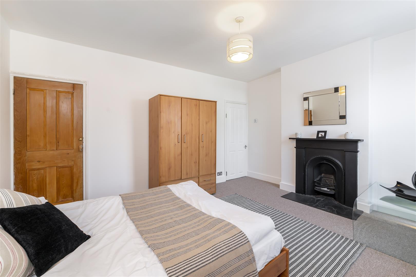 Bedroom One - Front aspect double glazed window, radiator, feature fireplace, power point, built-in cupboard.