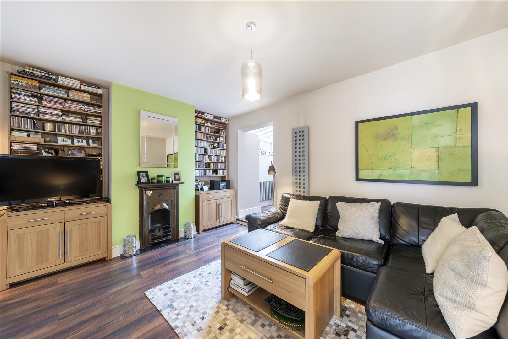 Reception Two - Feature fireplace, laminate flooring, feature radiator, understairs storage cupboard, through to...