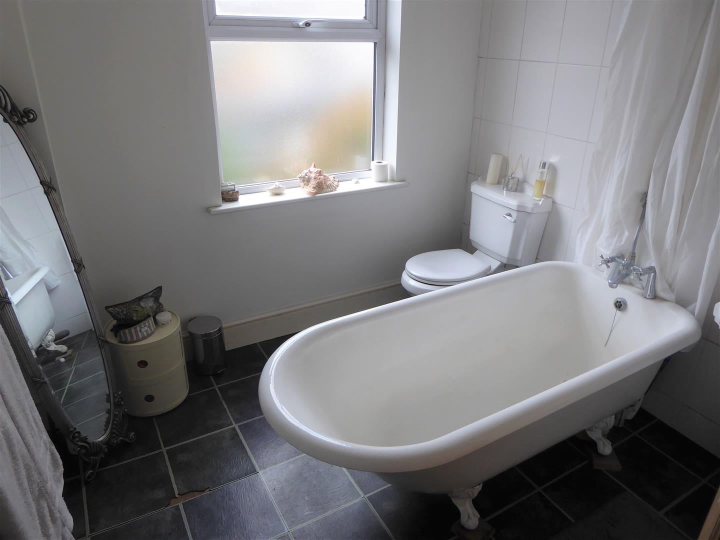 Family Bathroom - Feature freestanding bath with mixer taps and shower attachment, pedestal wash hand basin with mixer tap, low level w/c, part tiled walls, heated towel rail, rear aspect frosted window.