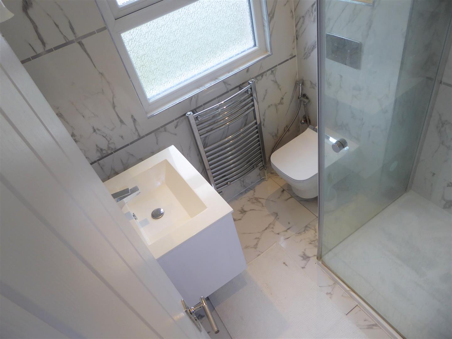 Shower Room - Tiled enclosed shower cubicle, wash hand basin, low level w/c, tiled walls, double glazed window.