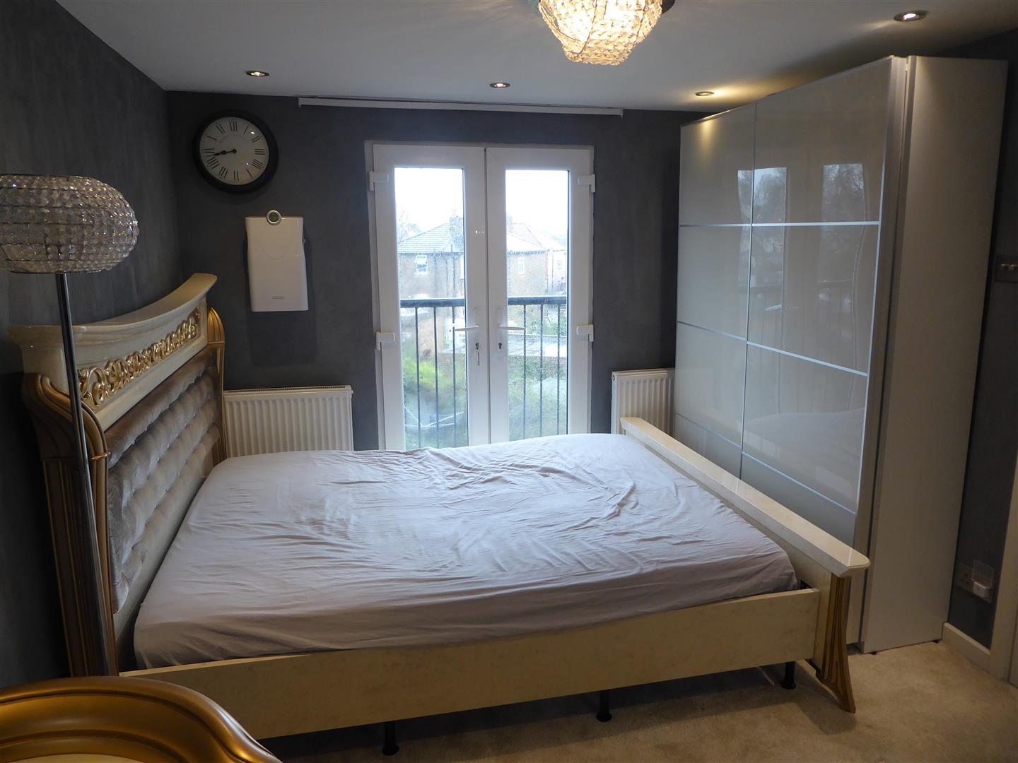 Bedroom Four - Skylight windows, radiator, double glazed doors to "Juliet" balcony, built-in wardrobes with further storage cupboards.