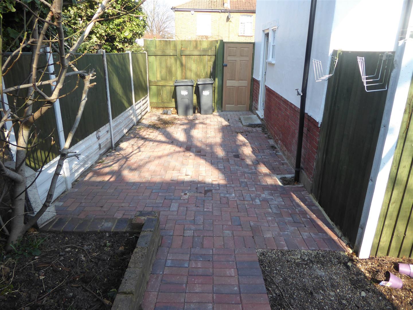 Side - Block paved area, access to front.